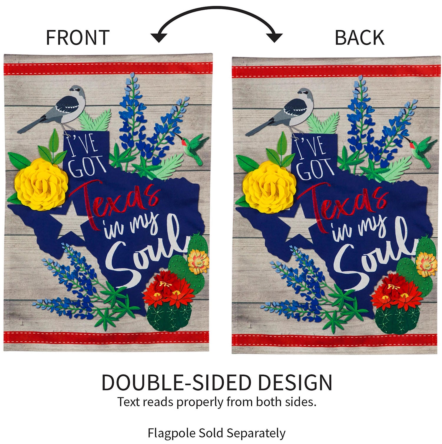 Give guests a grand greeting with the help of this Texas In My Soul Linen Garden Flag. The lively flag is made of lightweight, durable linen material that is designed to withstand a variety of weather conditions. Our flag creation process involves combining pieces of fade-resistant fabric with tight, detailed stitching in order to create a dimensional effect. Printed ink colors are protected with a watertight seal, so you can enjoy your flag for years to come.