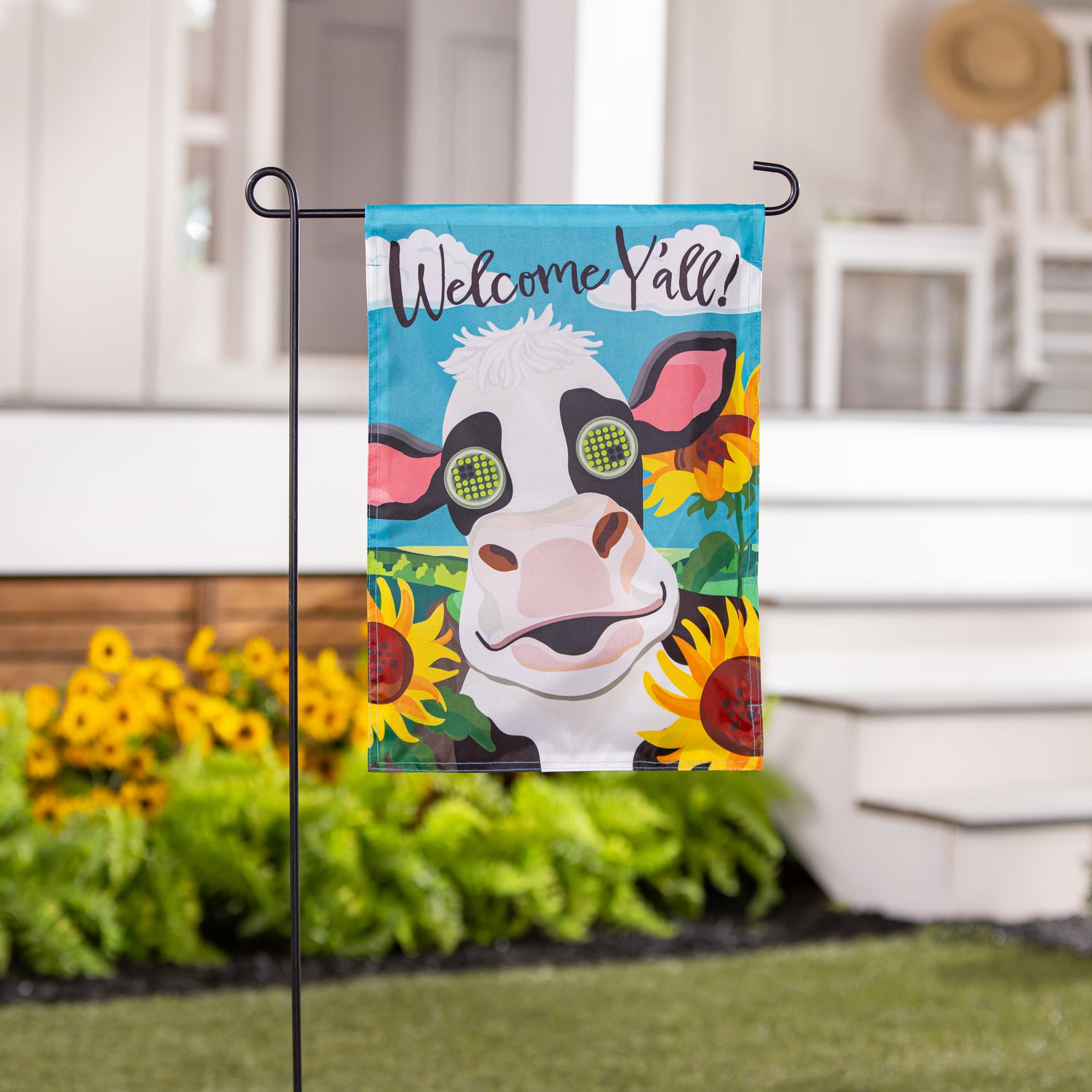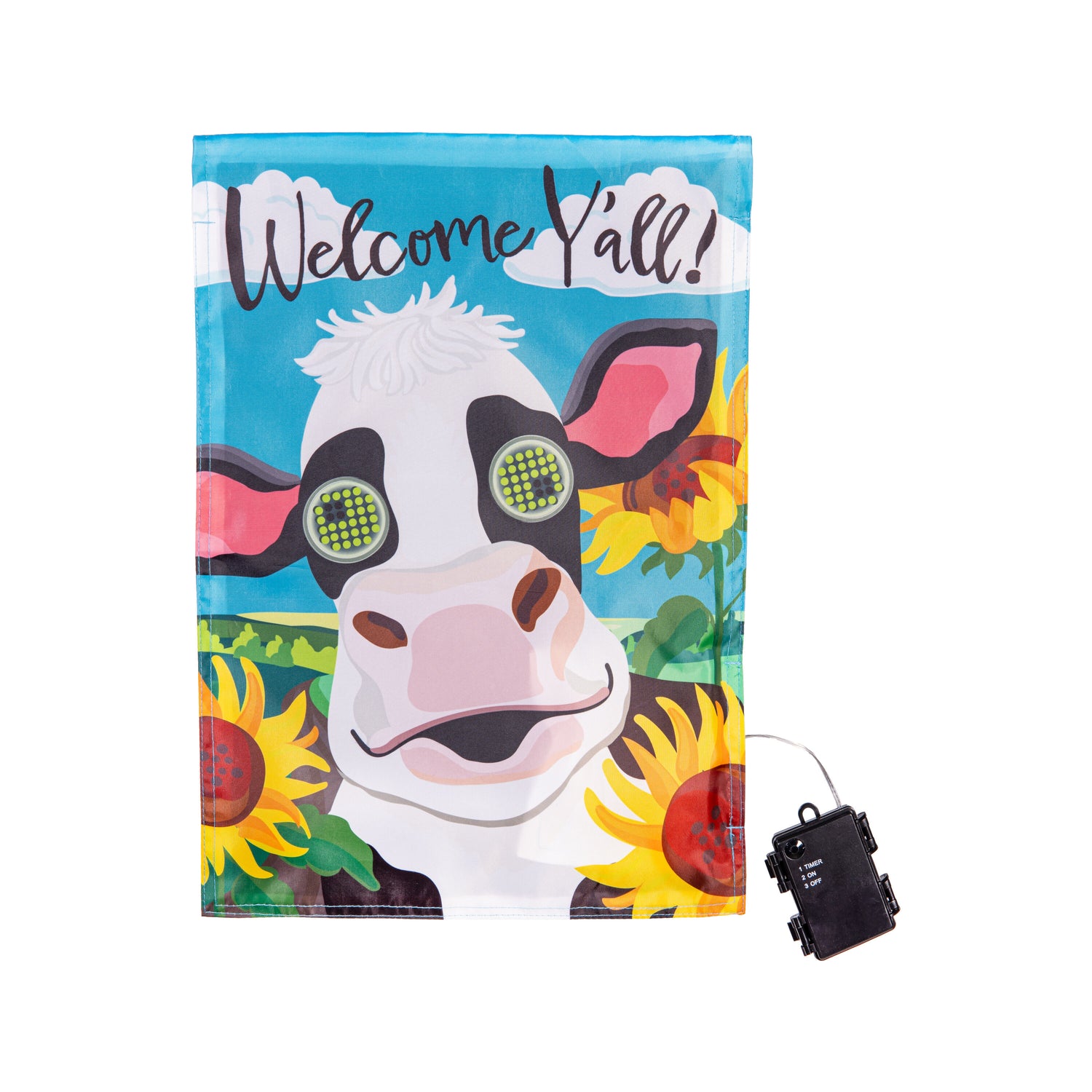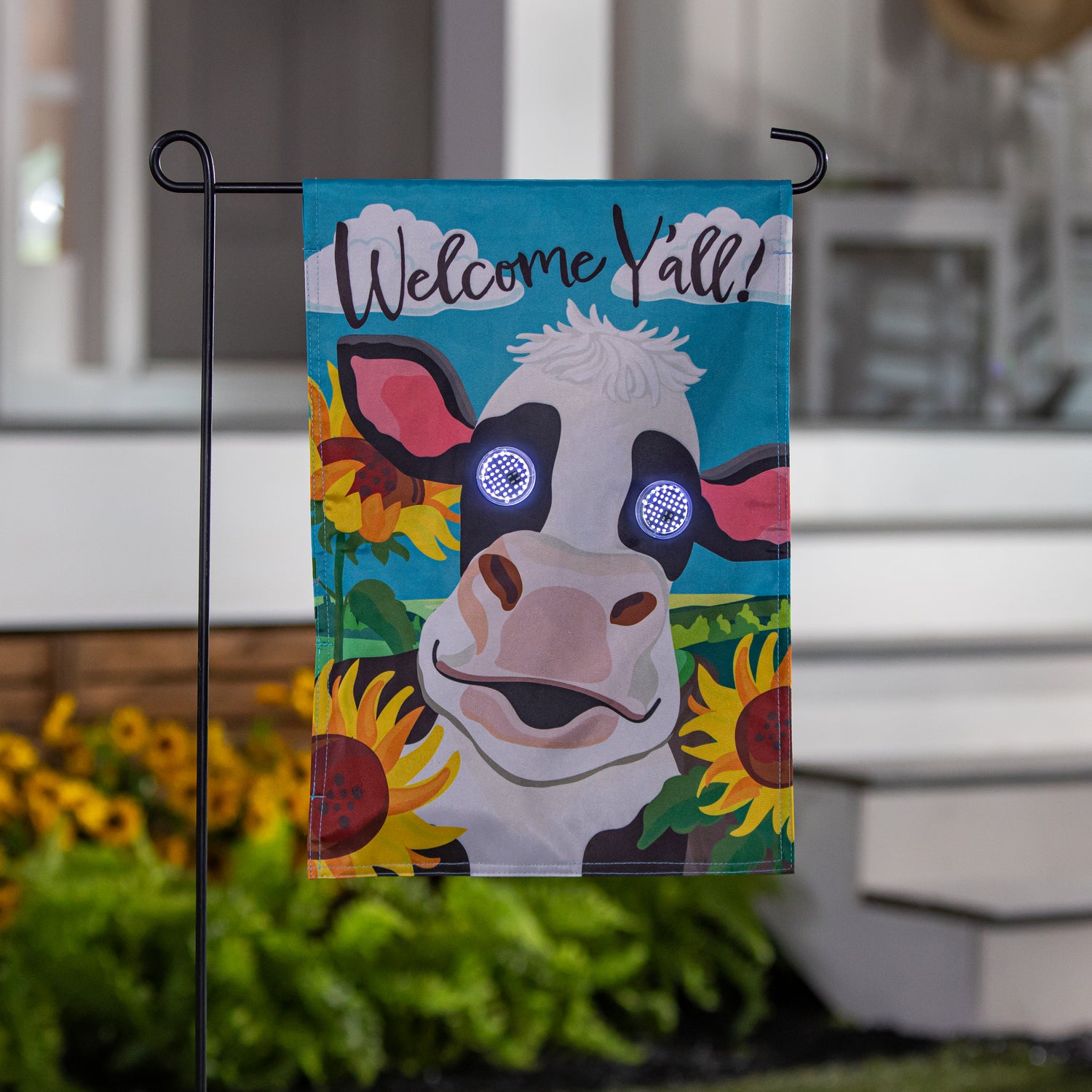 Winky Blinky Welcome Y'all Cow Applique Lighted Garden Flag