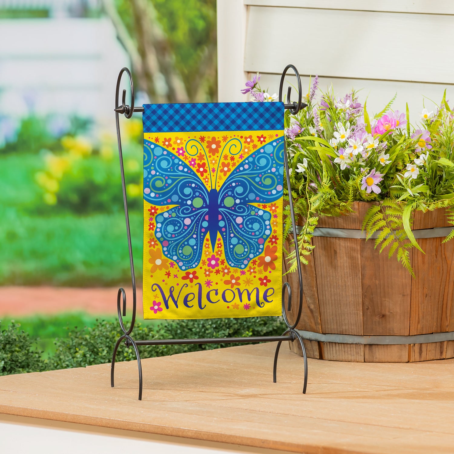 Enjoy the warm rays and cool breezes of summer by relaxing outside on the porch or in the garden. Create a refreshing backyard getaway with the perfect decorations, including this flag. It features vibrant pops of color and rich details, adding cheer and a lively atmosphere to greet friends, family, and neighbors. Crafted of medium-weight, soft polyester burlap fabric, this flag has the look and feel of real burlap. Artwork is heat transferred onto both sides of the textured fabric to create a natural, crafted look. The poly-burlap is a durable and weatherproof material that will not fade or fray after continued use. All flags also feature a sleeve for use with any standard flagpole or stand, sold separately.