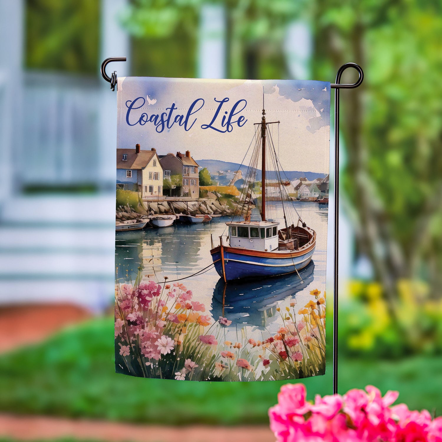 Bursting with bright colors and a detailed, lively design that adds beauty to any space, this flag is perfect for spring and beyond. Hang it in the garden to greet guests, neighbors, and friends. Flag is crafted of medium-weight suede fabric made from recycled plastic that provides a soft and durable texture. Artwork is heat transferred onto the sun-blocking material so that it is easily viewed from both sides. The weatherproof flag will not fray or fade with continued outdoor use. This flag features a sleeve for use with any standard flagpole or stand, sold separately.