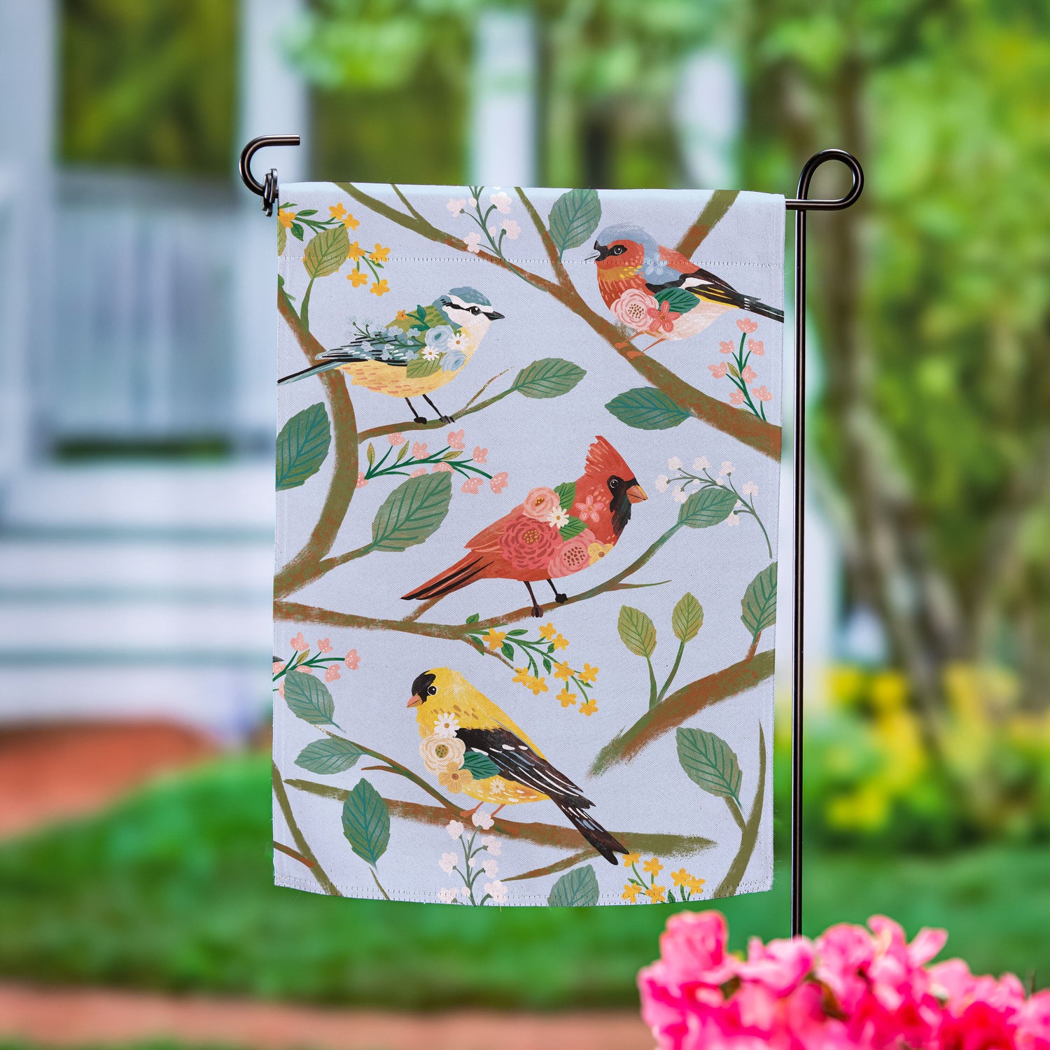 Bursting with bright colors and a detailed, lively design that adds beauty to any space, this flag is perfect for spring and beyond. Hang it in the garden to greet guests, neighbors, and friends. Flag is crafted of medium-weight suede fabric made from recycled plastic that provides a soft and durable texture. Artwork is heat transferred onto the sun-blocking material so that it is easily viewed from both sides. The weatherproof flag will not fray or fade with continued outdoor use. This flag features a sleeve for use with any standard flagpole or stand, sold separately.