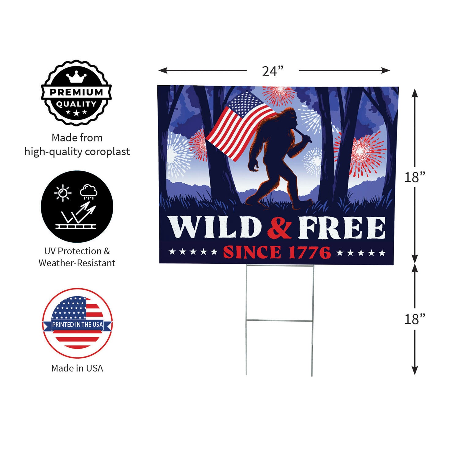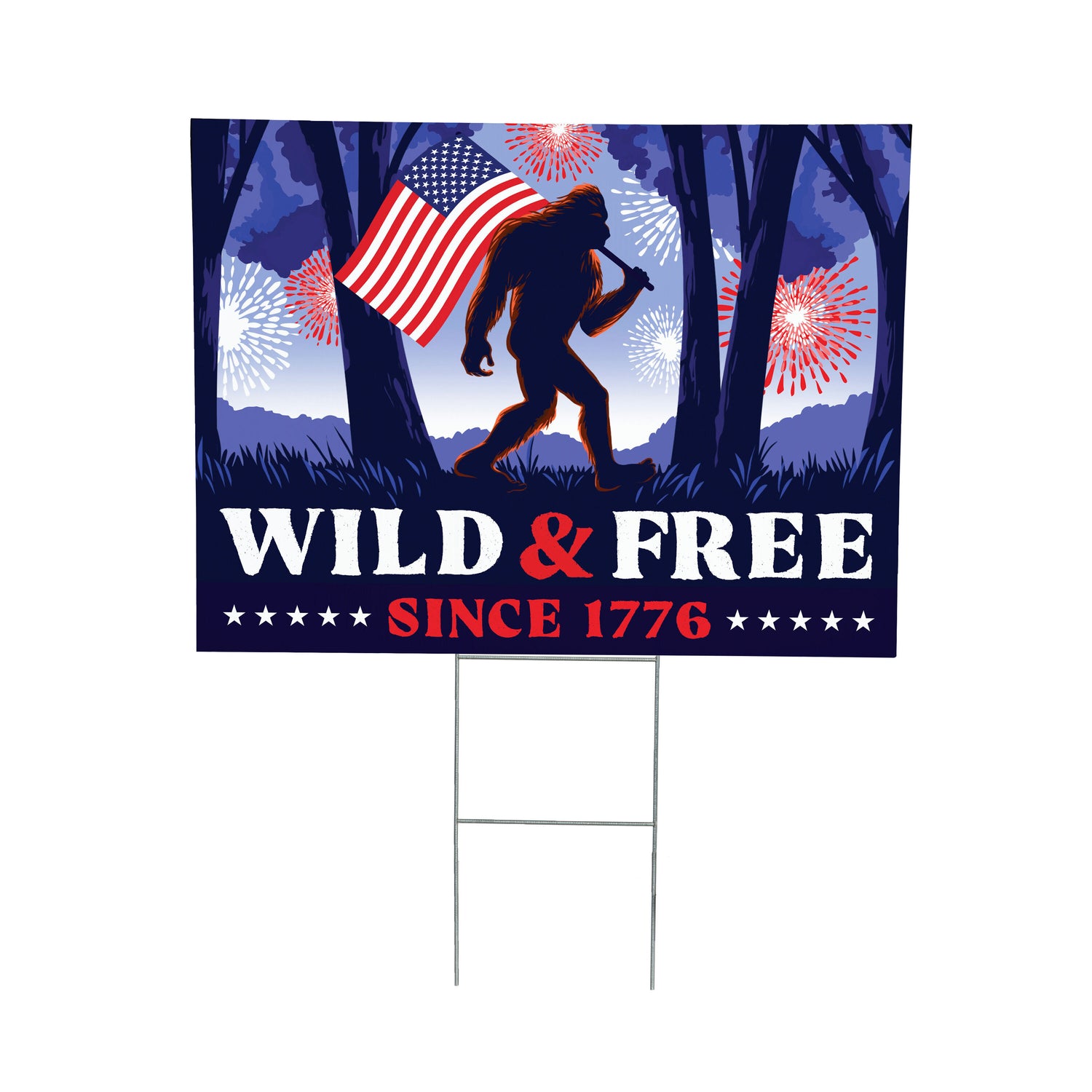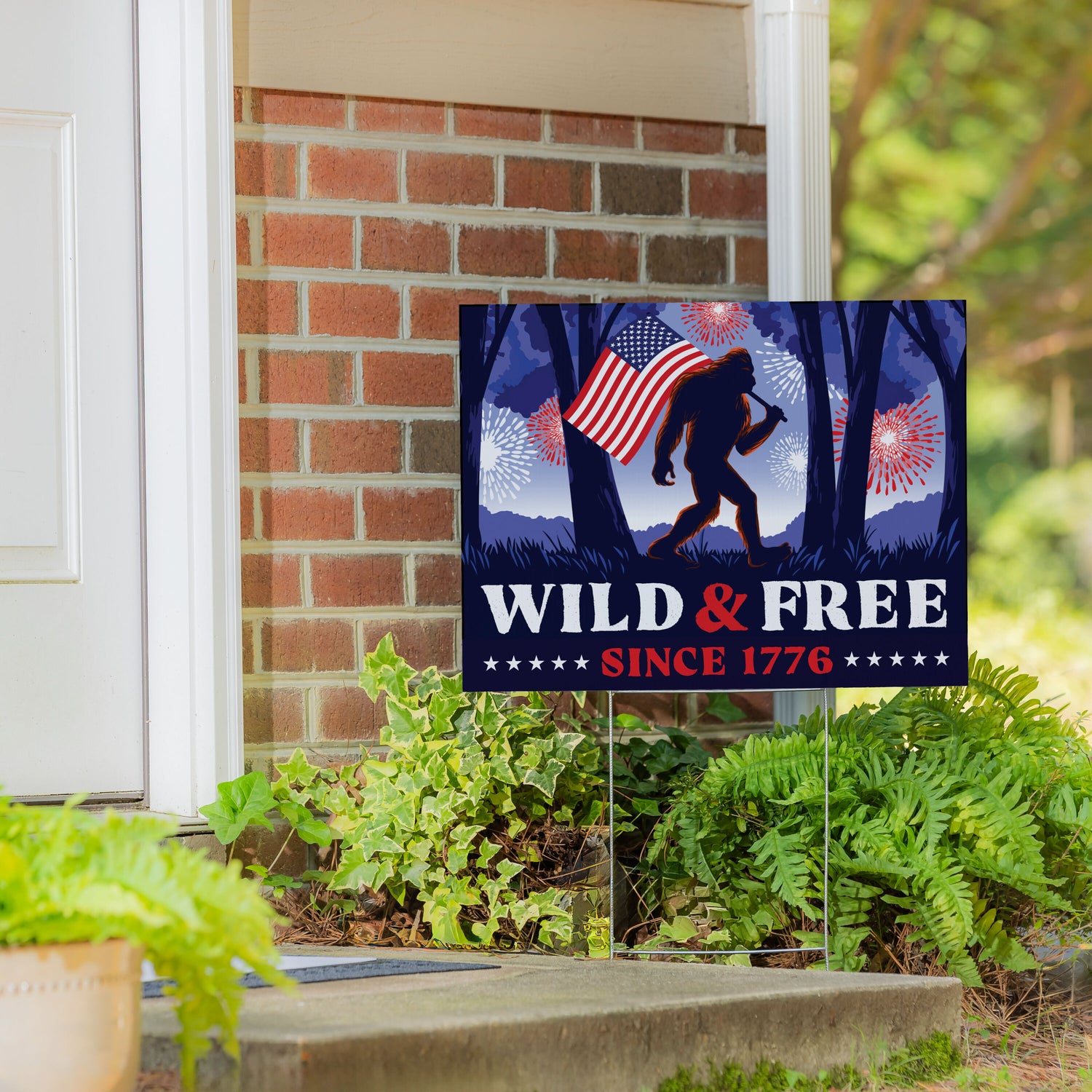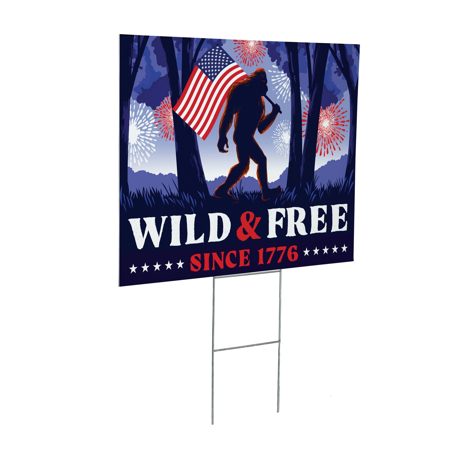 Red White & Bloom Yard Sign with H-Stake, "Wild & Free", 24"x18"