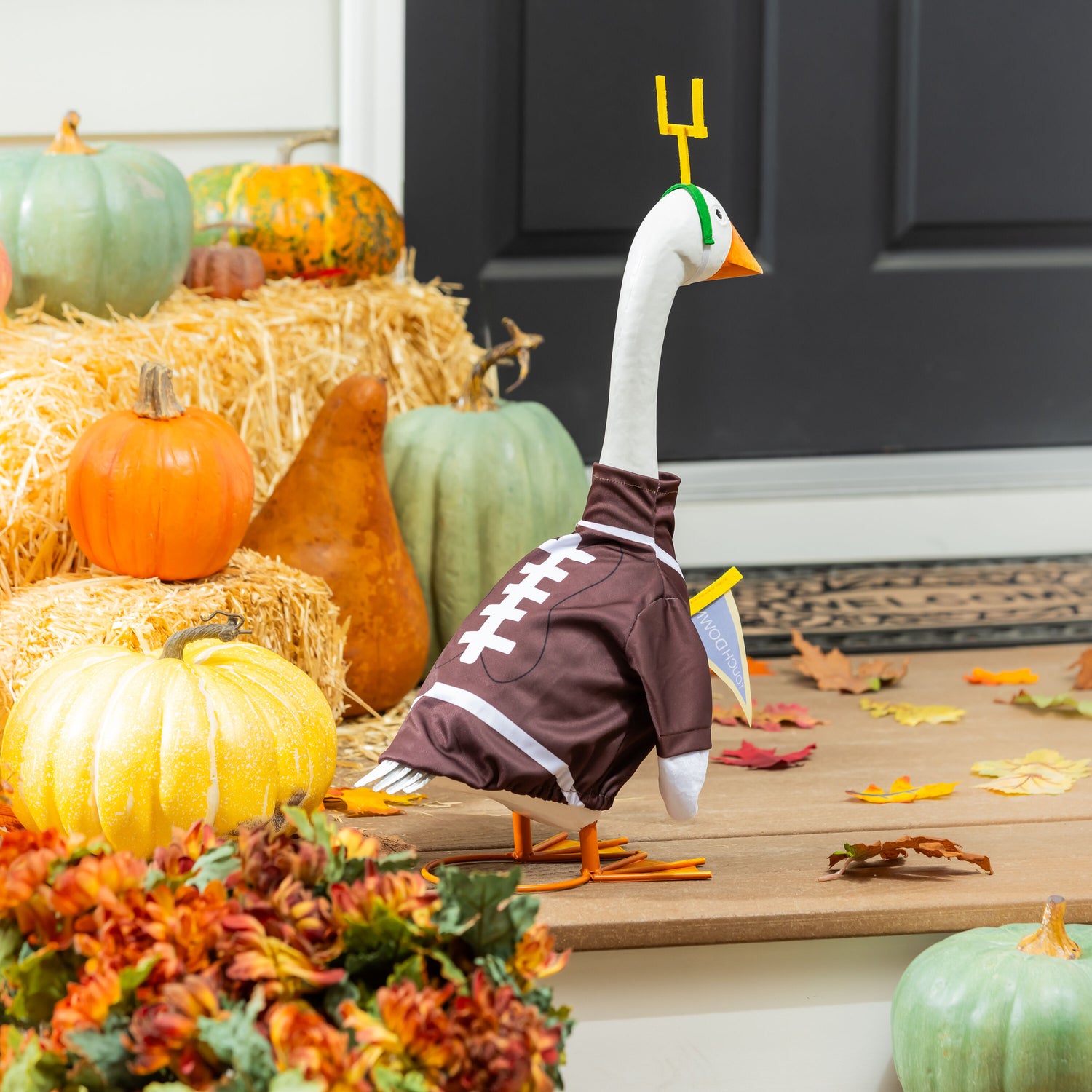 Kick off game-day fun with this sporty Football Post outfit. Designed to capture the excitement of football season, it gives every porch goose the look of a true fan favorite. Perfect for autumn displays, tailgate-inspired décor, or simply showing off love for the game, it makes a lively addition to porches, walkways, or yards. Durable and easy to style, this outfit scores big points in both charm and seasonal personality, making it a must-have for football lovers.