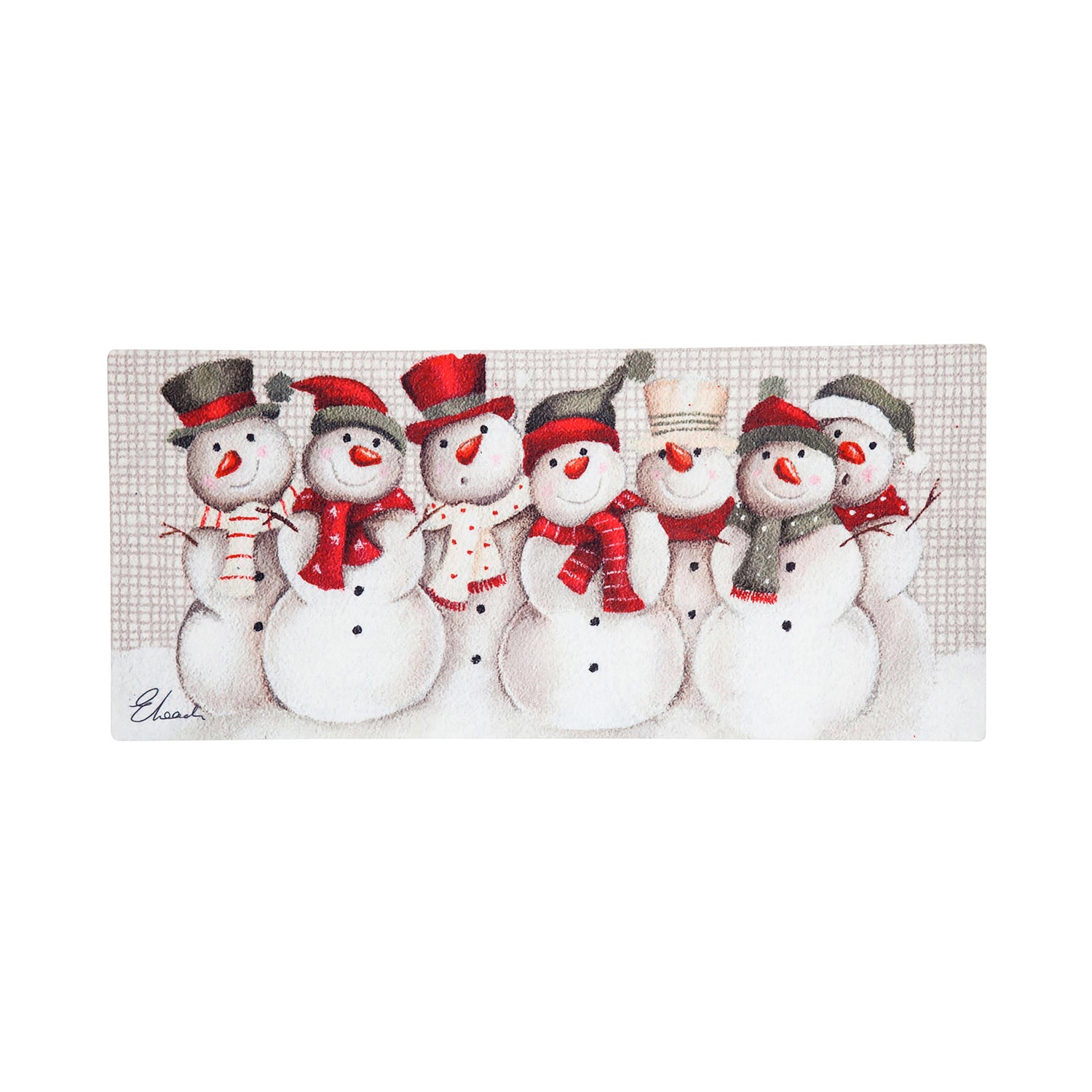 This Snow Friends Sassafras Switch Mat will send a warm holiday message to winter guests. Featuring seven charming snowmen, this doormat is perfect for Christmas decorating. The durable insert is created for placement in a Sassafras mat frame or tray, sold separately. Swap mats seasonally to keep things fresh and fun. The charming design is heat sublimated onto the polyester and rubber insert. Suitable for indoor and outdoor use, the floor mat can also be used on its own as a stair tread or small floor mat. It is mildew resistant and features an anti-slip backing. Spot clean with soap and warm water or hose down. For best results, display your mat in a covered or sheltered area to prevent fading.