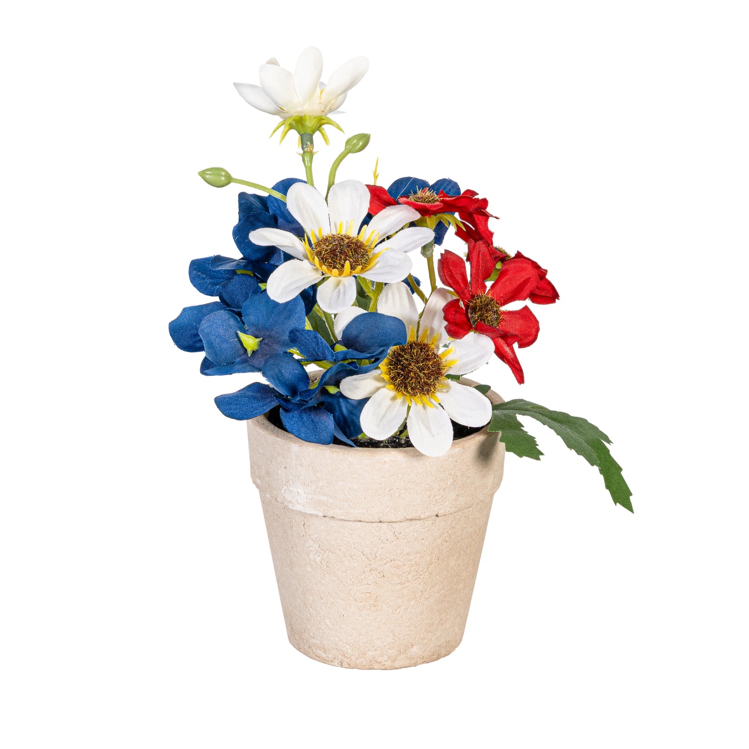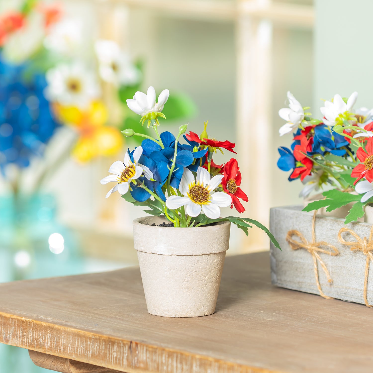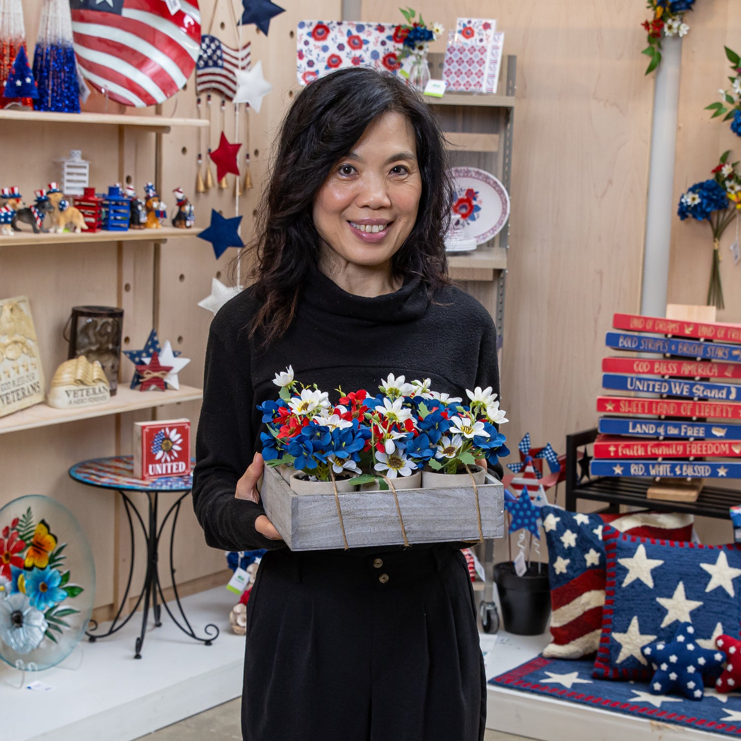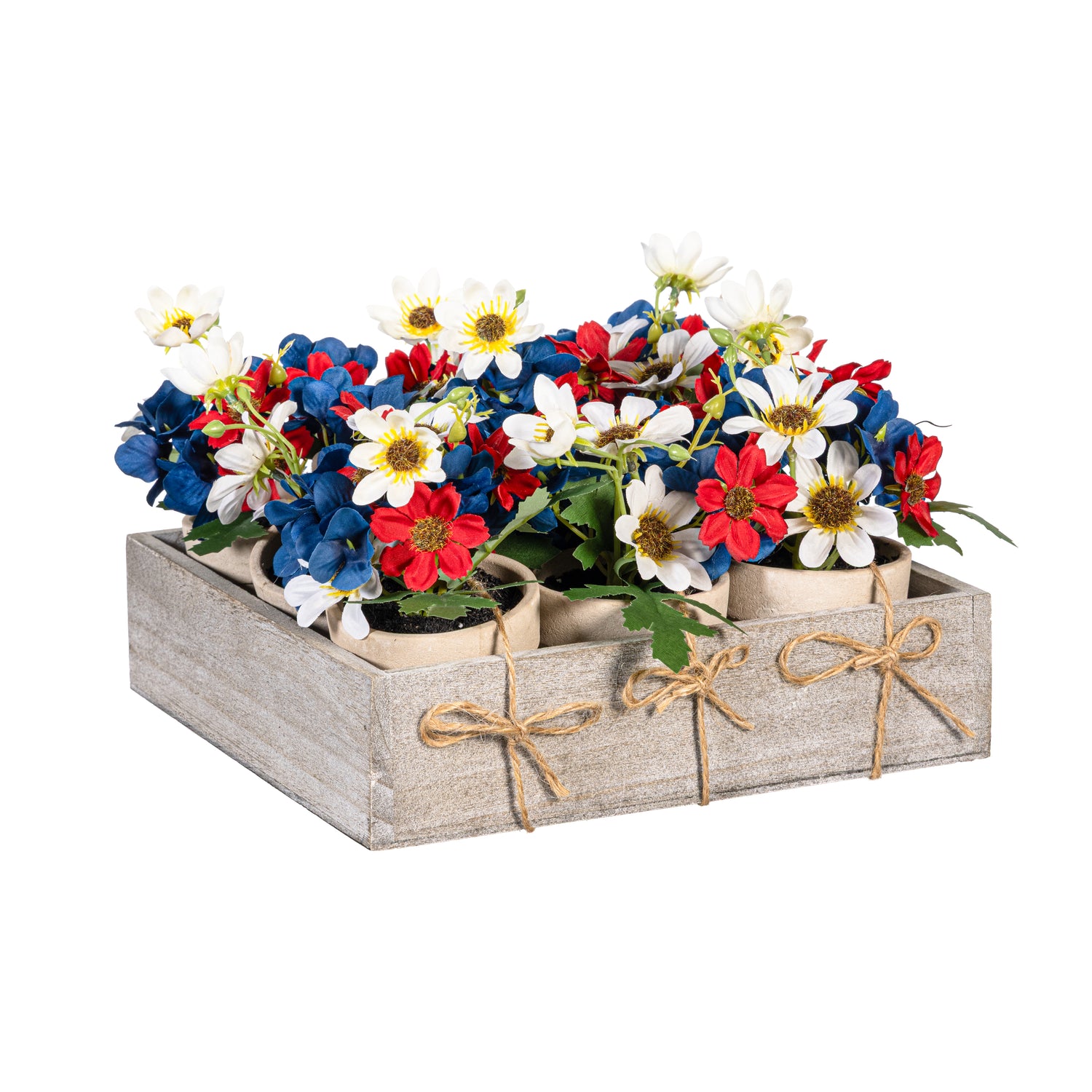 American Classic Faux Floral Table Decor Artificial with Butterflies, 7.25"H, In Wood Tray