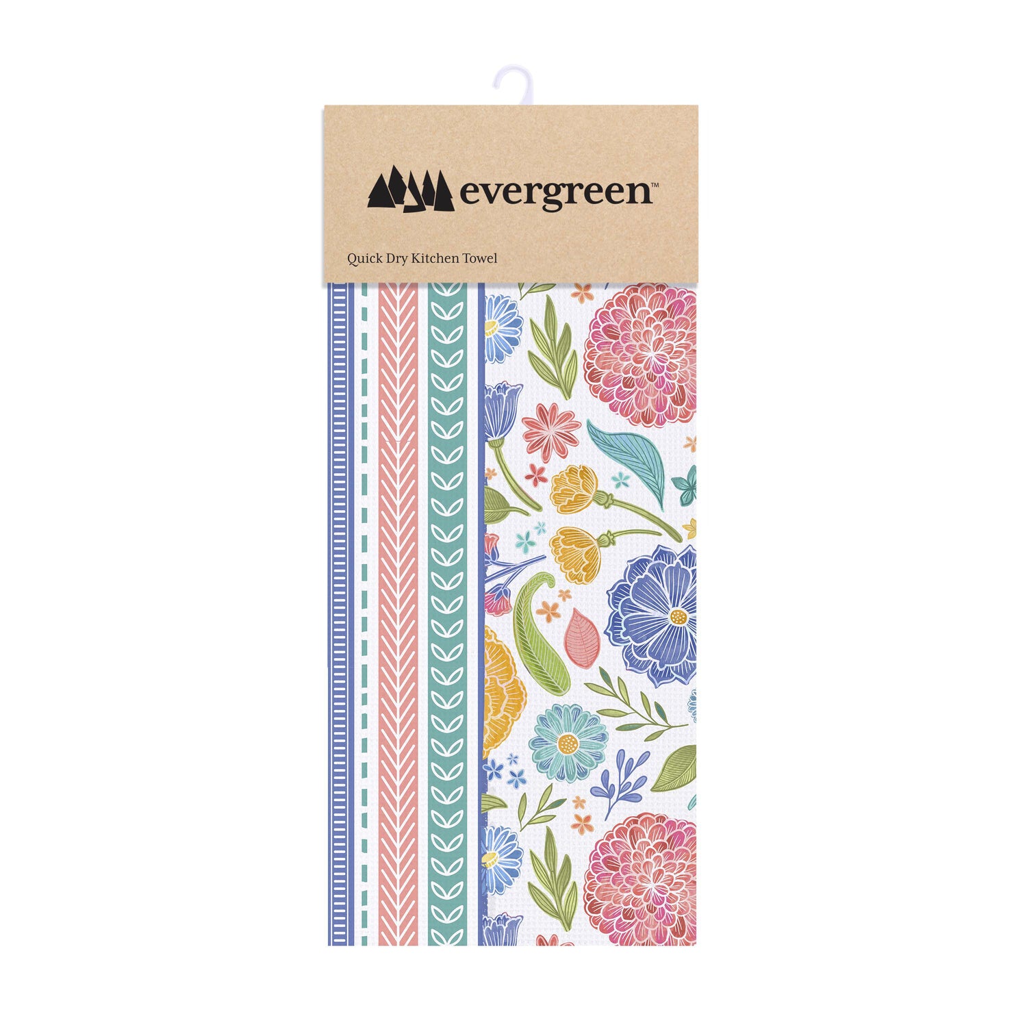 - With a vibrant design, this kitchen towel will look perfect in the kitchen for spring and beyond.