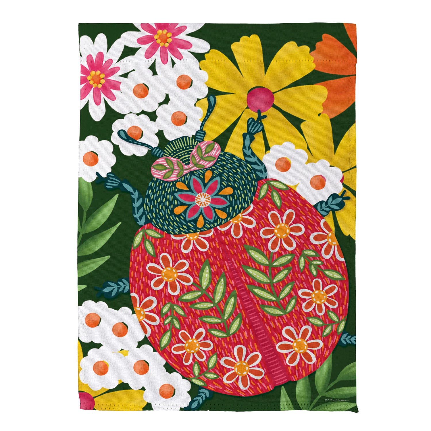 Enjoy the warm rays and cool breezes of summer by relaxing outside on the porch or in the garden. Create a refreshing backyard getaway with the perfect decorations, including this flag. It features vibrant pops of color and rich details, adding cheer and a lively atmosphere to greet friends, family, and neighbors. This Suede Reflections flag is made of medium-weight, polyester suede that provides a soft and durable texture. Artwork is heat transferred onto the sun-blocking material so that it is easily viewed from both sides. The weatherproof poly-suede will not fray or fade with continued outdoor use. This flag features a sleeve for use with any standard flagpole or stand, sold separately.