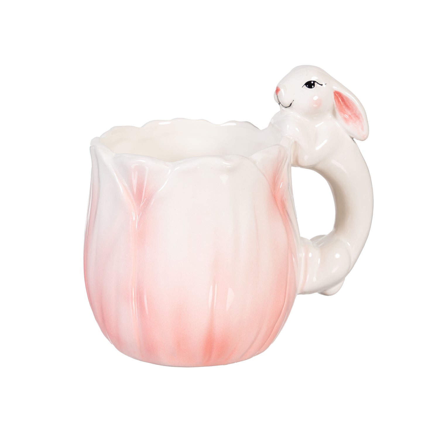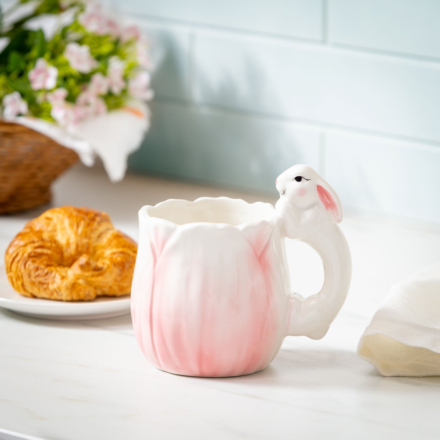 Bunny Blooms Coffee Cup Ceramic Sculpted Flower with Bunny Handle, 17.5oz, Gift Box