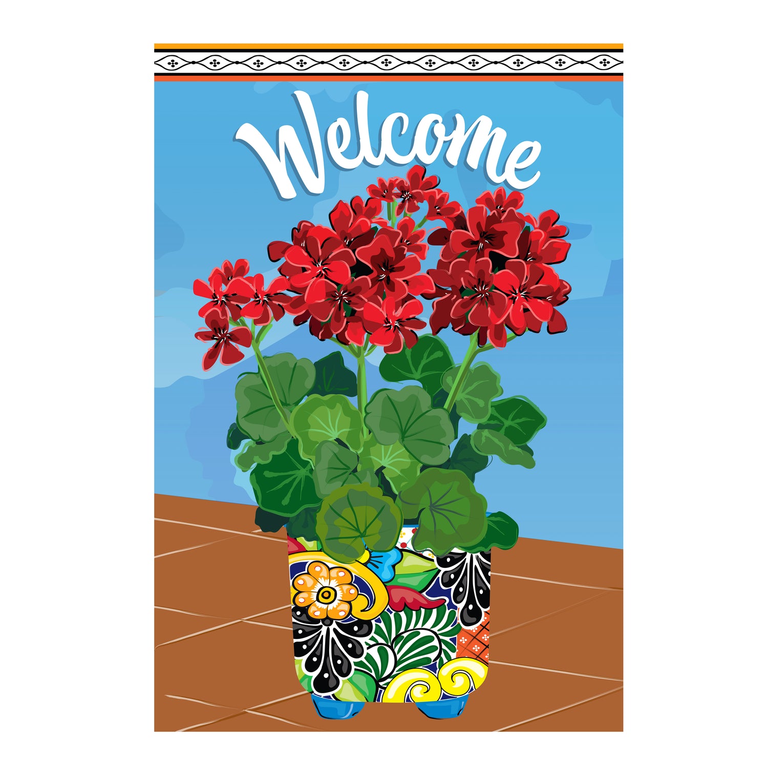 Mexican Pottery With Geraniums Applique House Flag