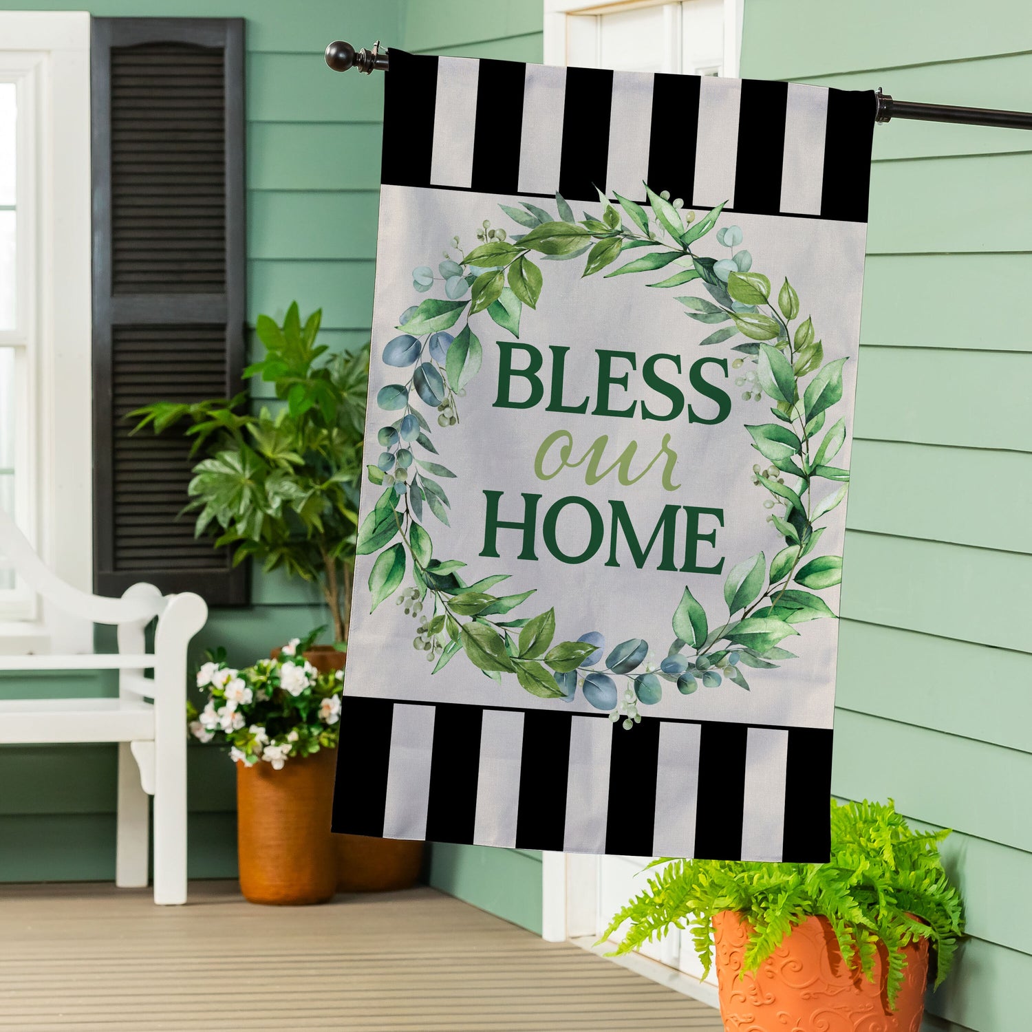 Enjoy the warm rays and cool breezes of summer by relaxing outside on the porch or in the garden. Create a refreshing backyard getaway with the perfect decorations, including this flag. It features vibrant pops of color and rich details, adding cheer and a lively atmosphere to greet friends, family, and neighbors. Crafted of medium-weight, soft polyester burlap fabric, this flag has the look and feel of real burlap. Artwork is heat transferred onto both sides of the textured fabric to create a natural, crafted look. The poly-burlap is a durable and weatherproof material that will not fade or fray after continued use. All flags also feature a sleeve for use with any standard flagpole or stand, sold separately.