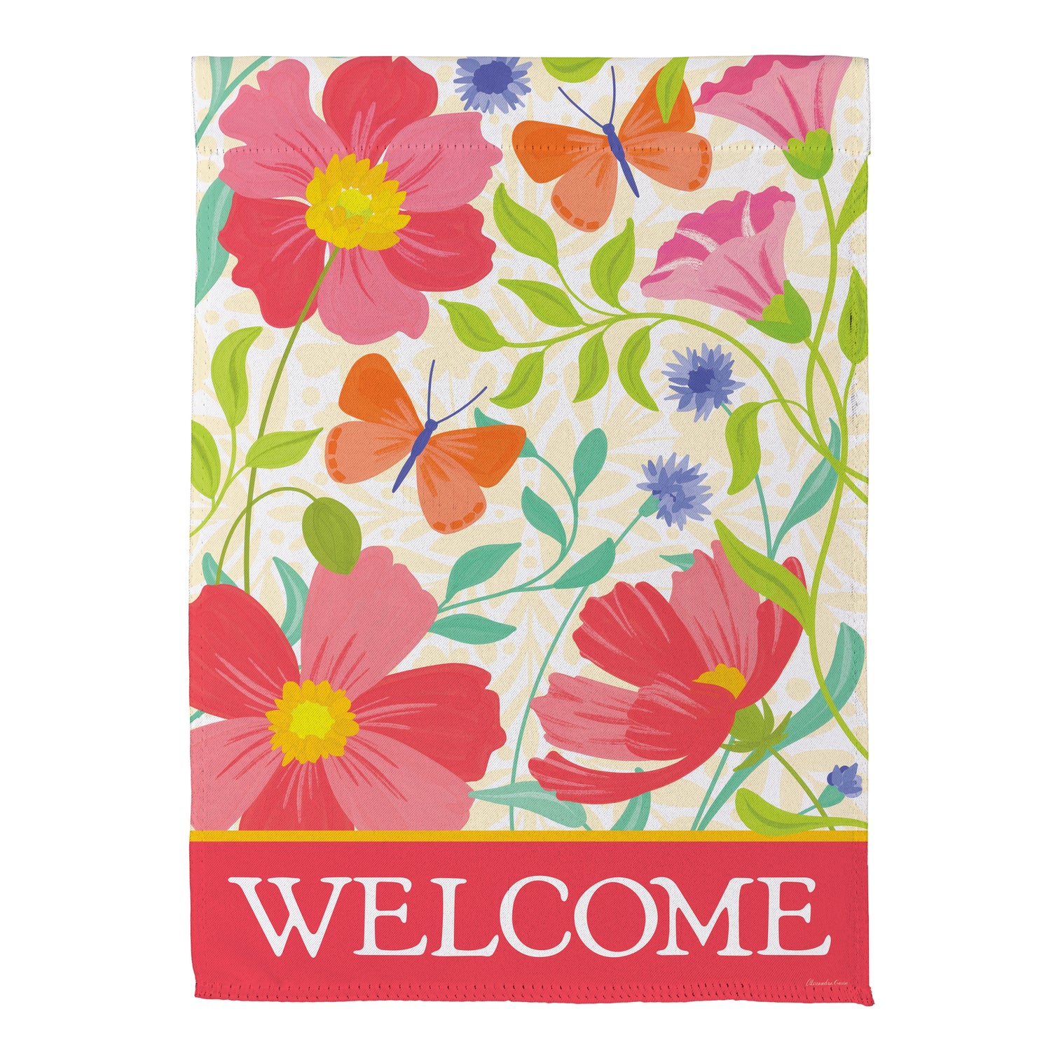 Enjoy the warm rays and cool breezes of summer by relaxing outside on the porch or in the garden. Create a refreshing backyard getaway with the perfect decorations, including this flag. It features vibrant pops of color and rich details, adding cheer and a lively atmosphere to greet friends, family, and neighbors. This Suede Reflections flag is made of medium-weight, polyester suede that provides a soft and durable texture. Artwork is heat transferred onto the sun-blocking material so that it is easily viewed from both sides. The weatherproof poly-suede will not fray or fade with continued outdoor use. This flag features a sleeve for use with any standard flagpole or stand, sold separately.