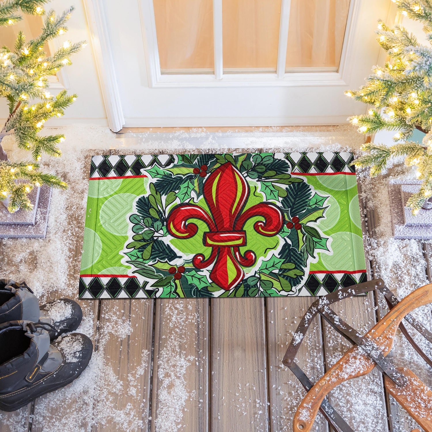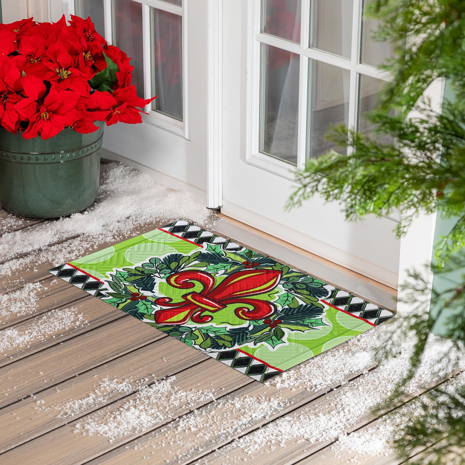 Step into winter style with this embossed mat. Perfect for adding an extra charming touch to any entryway, this welcoming design features a fleur de lis and a wreath. Evergreen's embossed mats are crafted from outdoor-safe polypropylene and feature a rubber anti-slip backing. The embossed texture makes this mat more effective in trapping dirt, perfect for indoor or outdoor use.