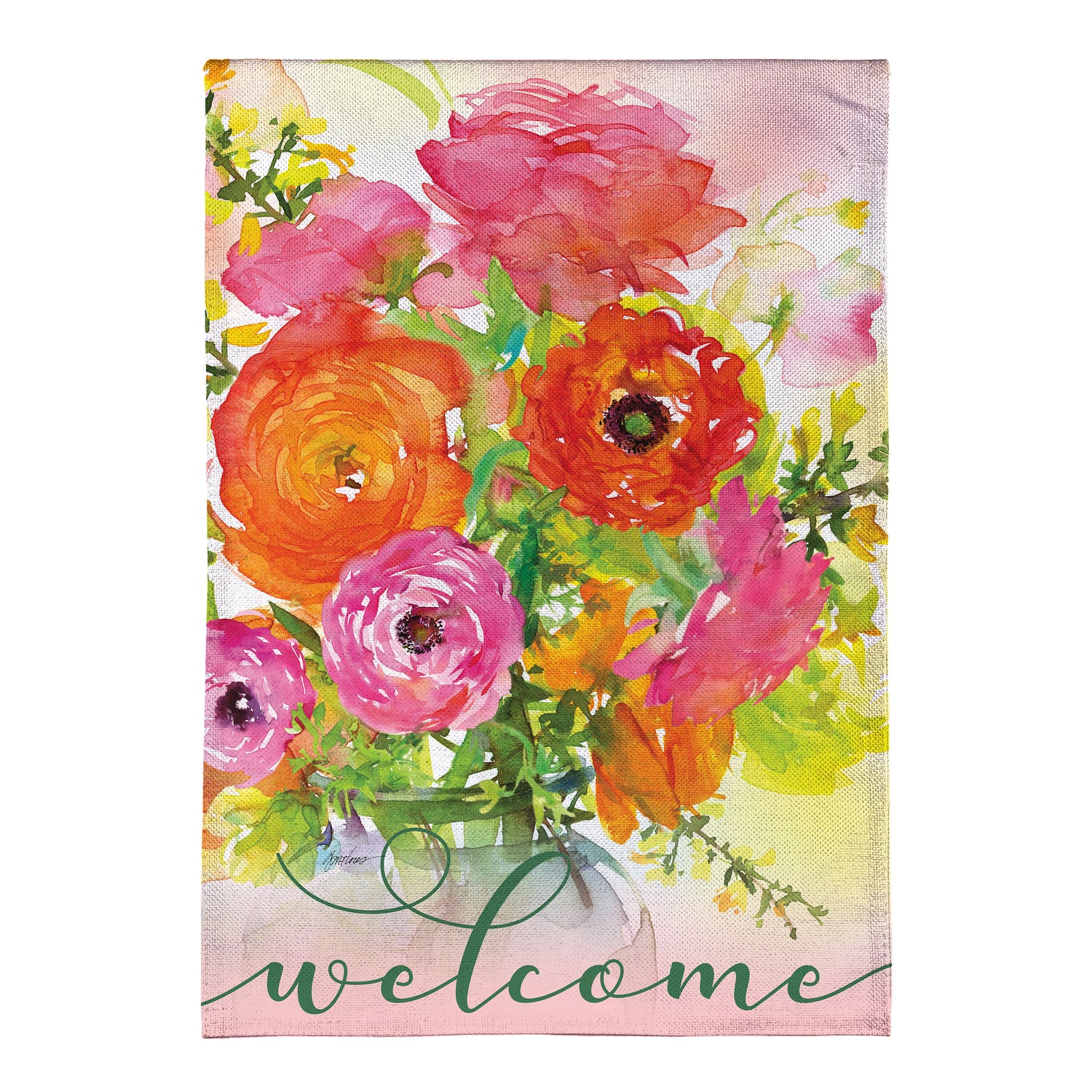 Enjoy the warm rays and cool breezes of summer by relaxing outside on the porch or in the garden. Create a refreshing backyard getaway with the perfect decorations, including this flag. It features vibrant pops of color and rich details, adding cheer and a lively atmosphere to greet friends, family, and neighbors. Crafted of medium-weight, soft polyester burlap fabric, this flag has the look and feel of real burlap. Artwork is heat transferred onto both sides of the textured fabric to create a natural, crafted look. The poly-burlap is a durable and weatherproof material that will not fade or fray after continued use. All flags also feature a sleeve for use with any standard flagpole or stand, sold separately.