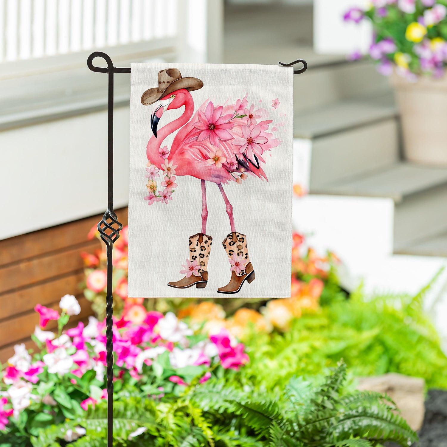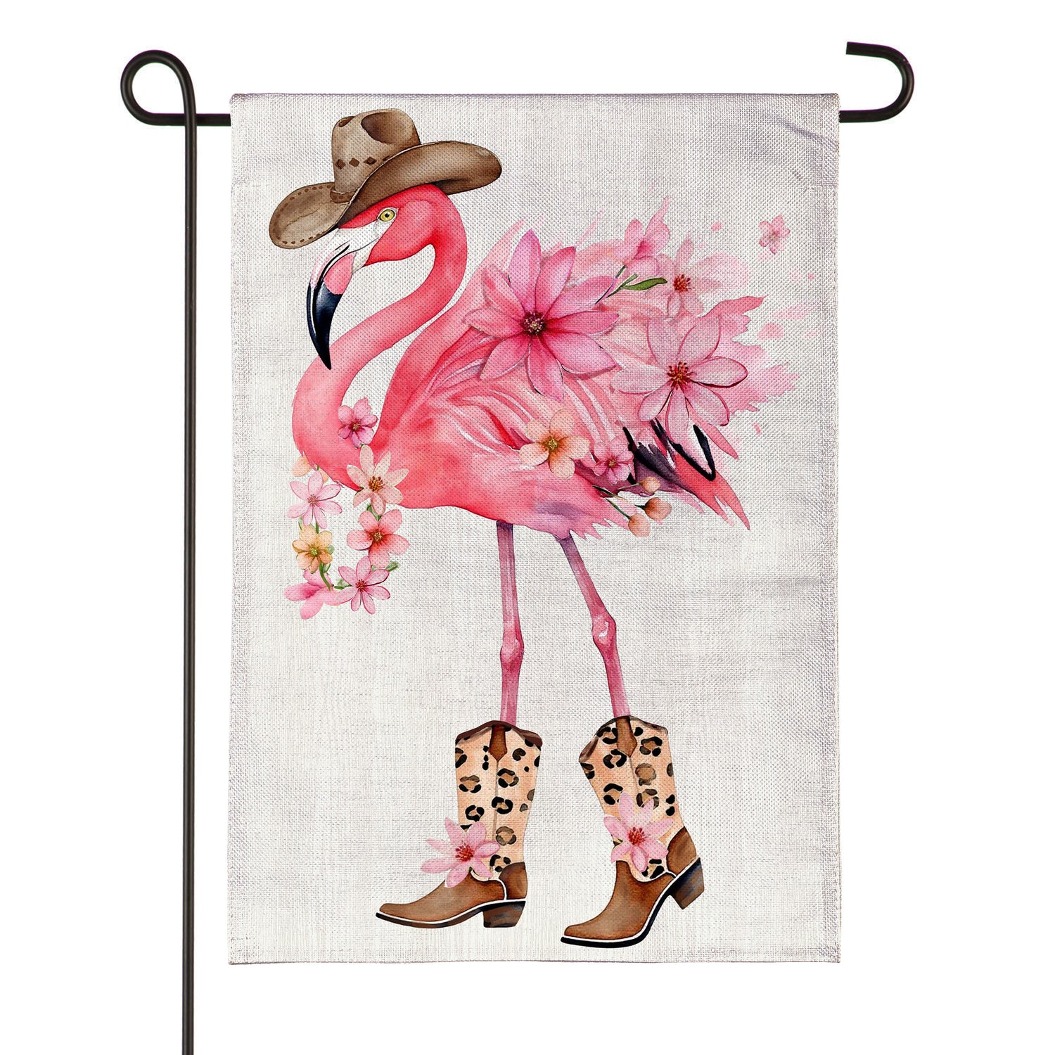 Western Flamingo Burlap Garden Flag
