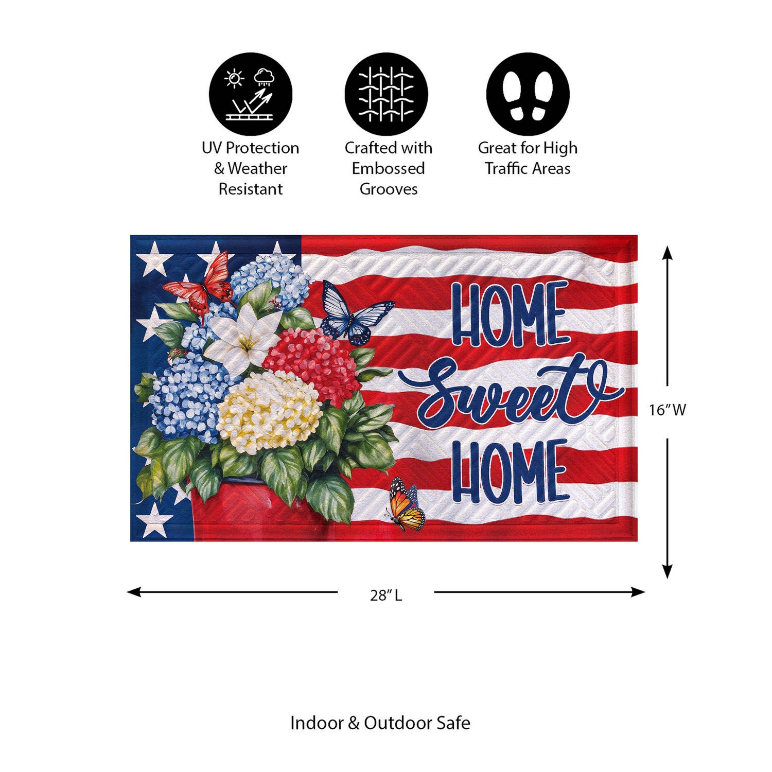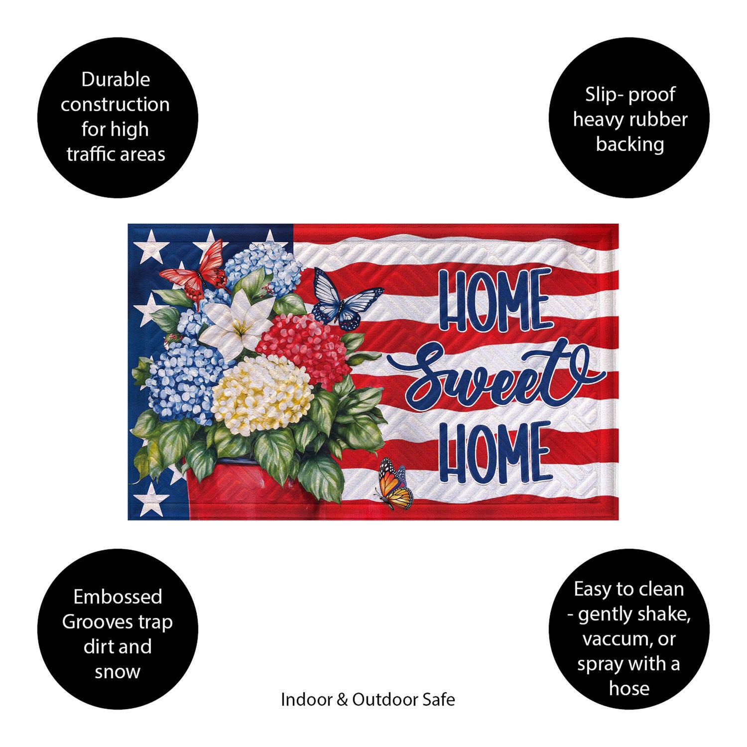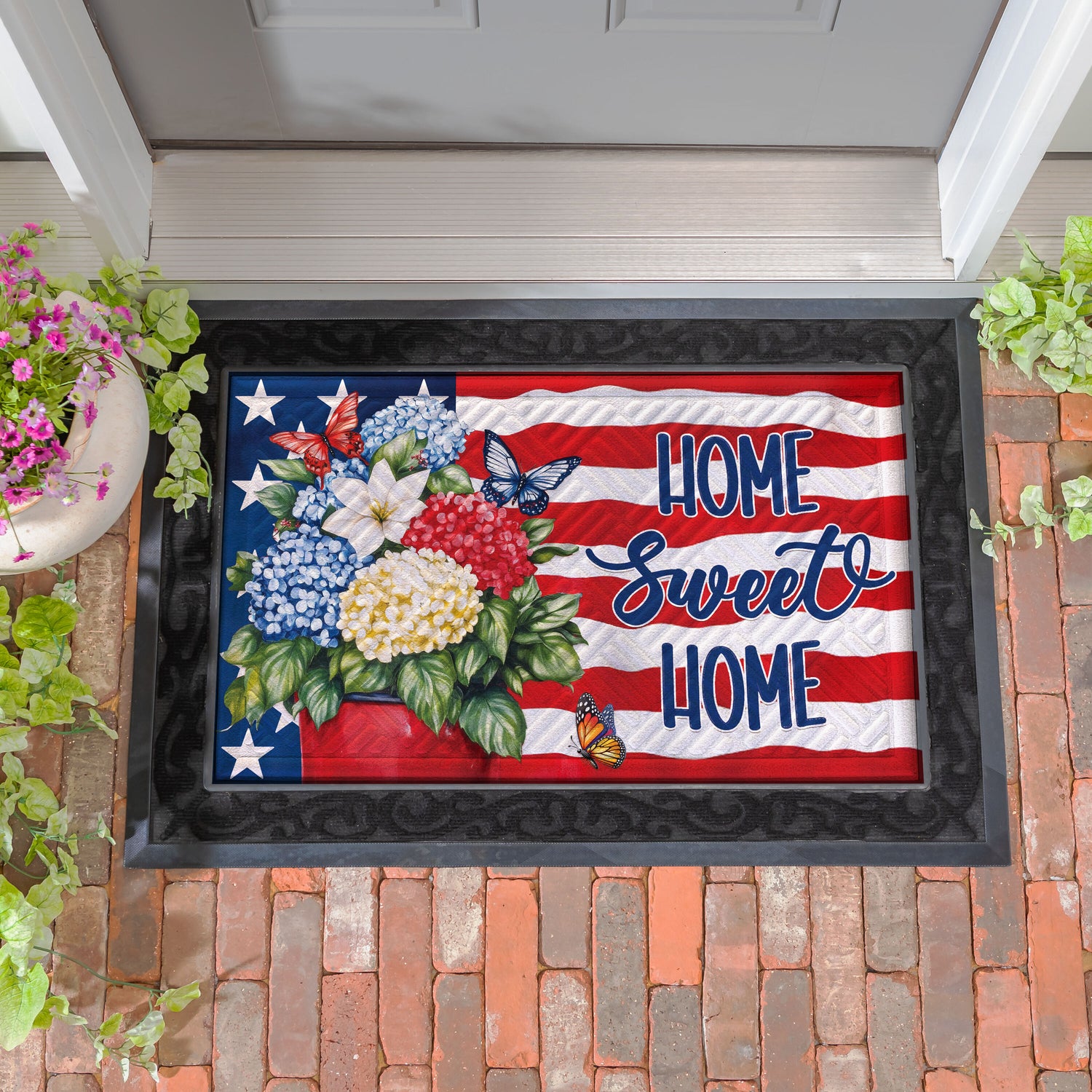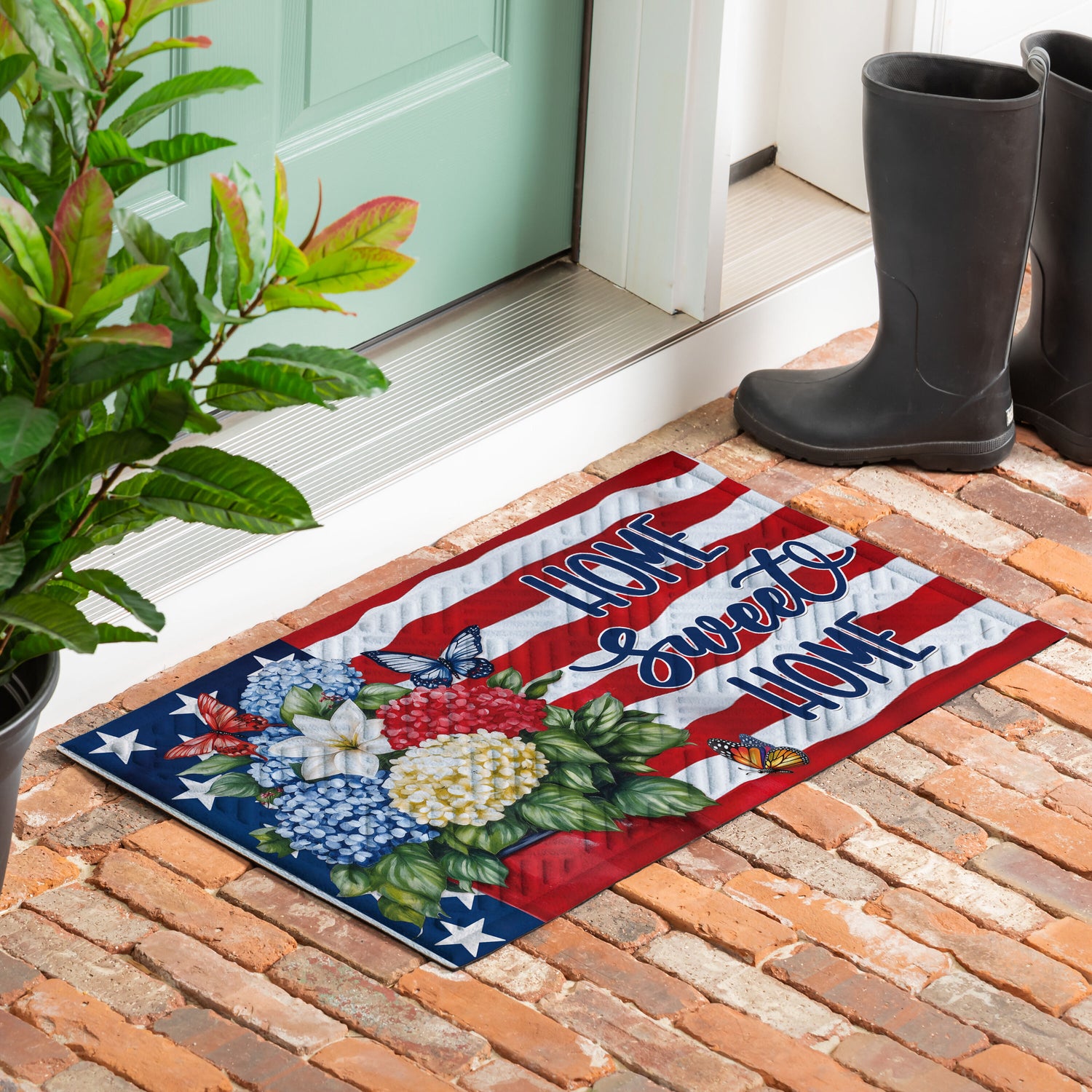 Sweep guests off their feet with our beautifully made embossed mats! Made with bright pops of color that are perfect for the season, this mat will put pep in anyone's step. Evergreen's embossed mats are crafted from outdoor-safe polypropylene and feature a rubber anti-slip backing. The embossed texture makes this mat more effective in trapping dirt, perfect for indoor or outdoor use. Place it in a high-traffic area to keep debris out of the home.