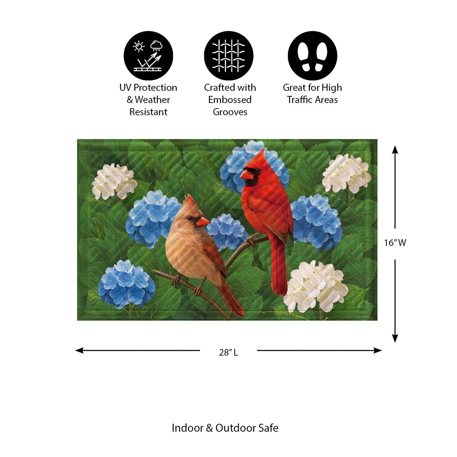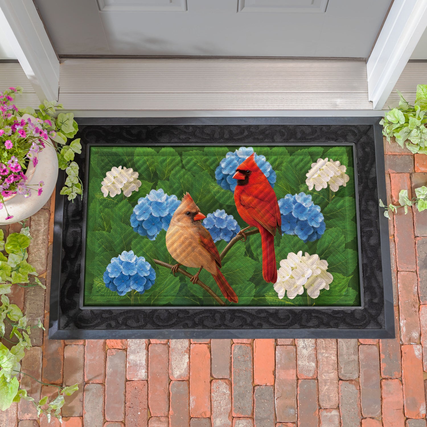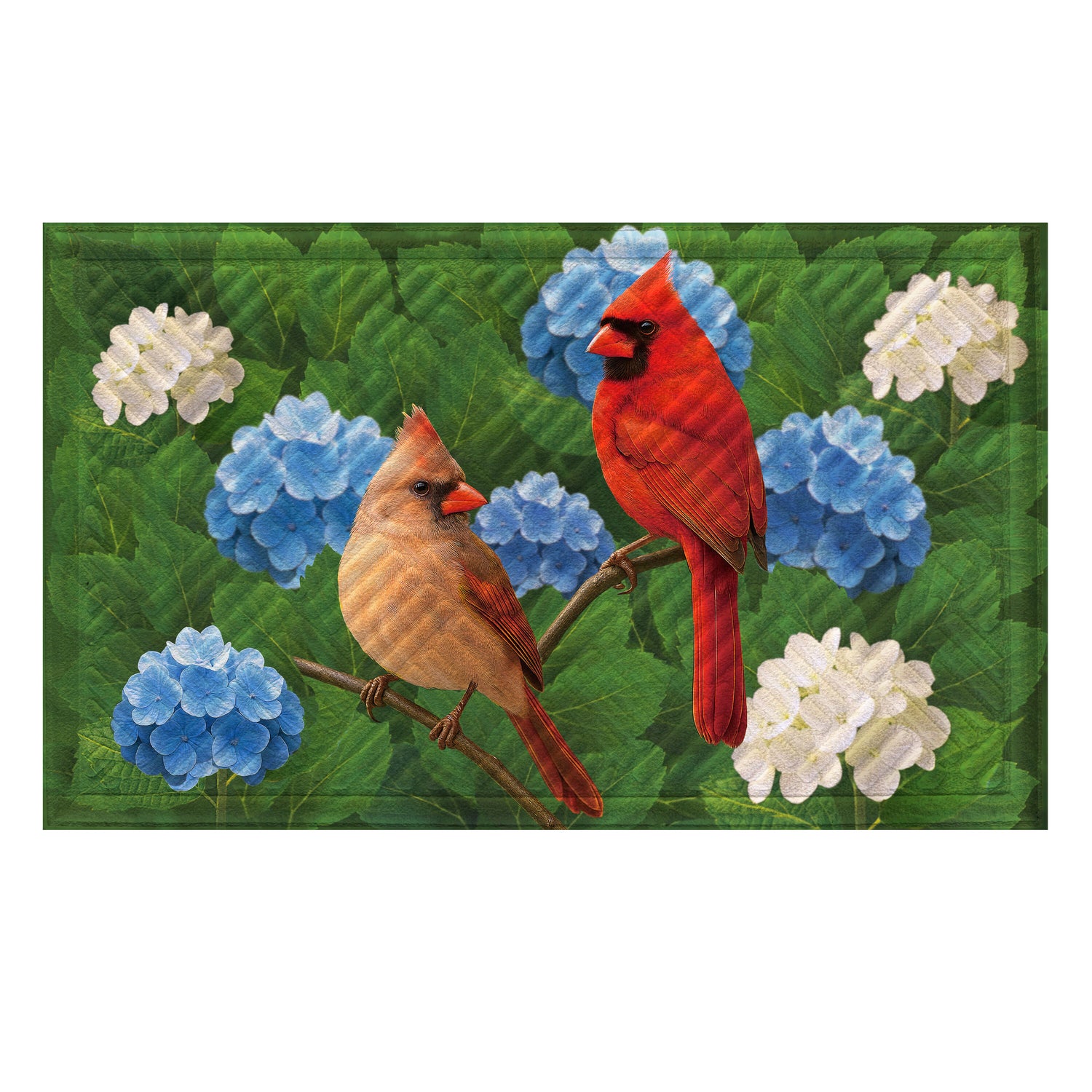 Cardinal Couple Among Hydrangea Embossed Mat