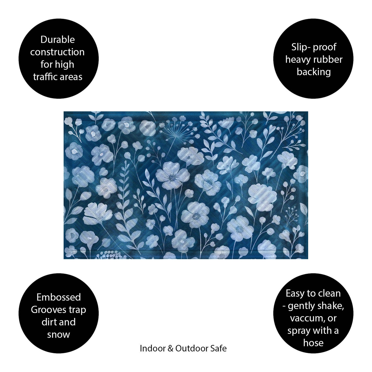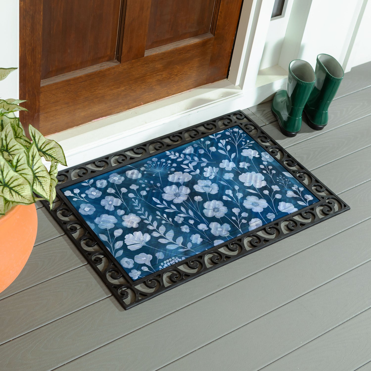 Sweep guests off their feet with our beautifully made embossed mats! Made with bright pops of color that are perfect for the season, this mat will put pep in anyone's step. Evergreen's embossed mats are crafted from outdoor-safe polypropylene and feature a rubber anti-slip backing. The embossed texture makes this mat more effective in trapping dirt, perfect for indoor or outdoor use. Place it in a high-traffic area to keep debris out of the home.