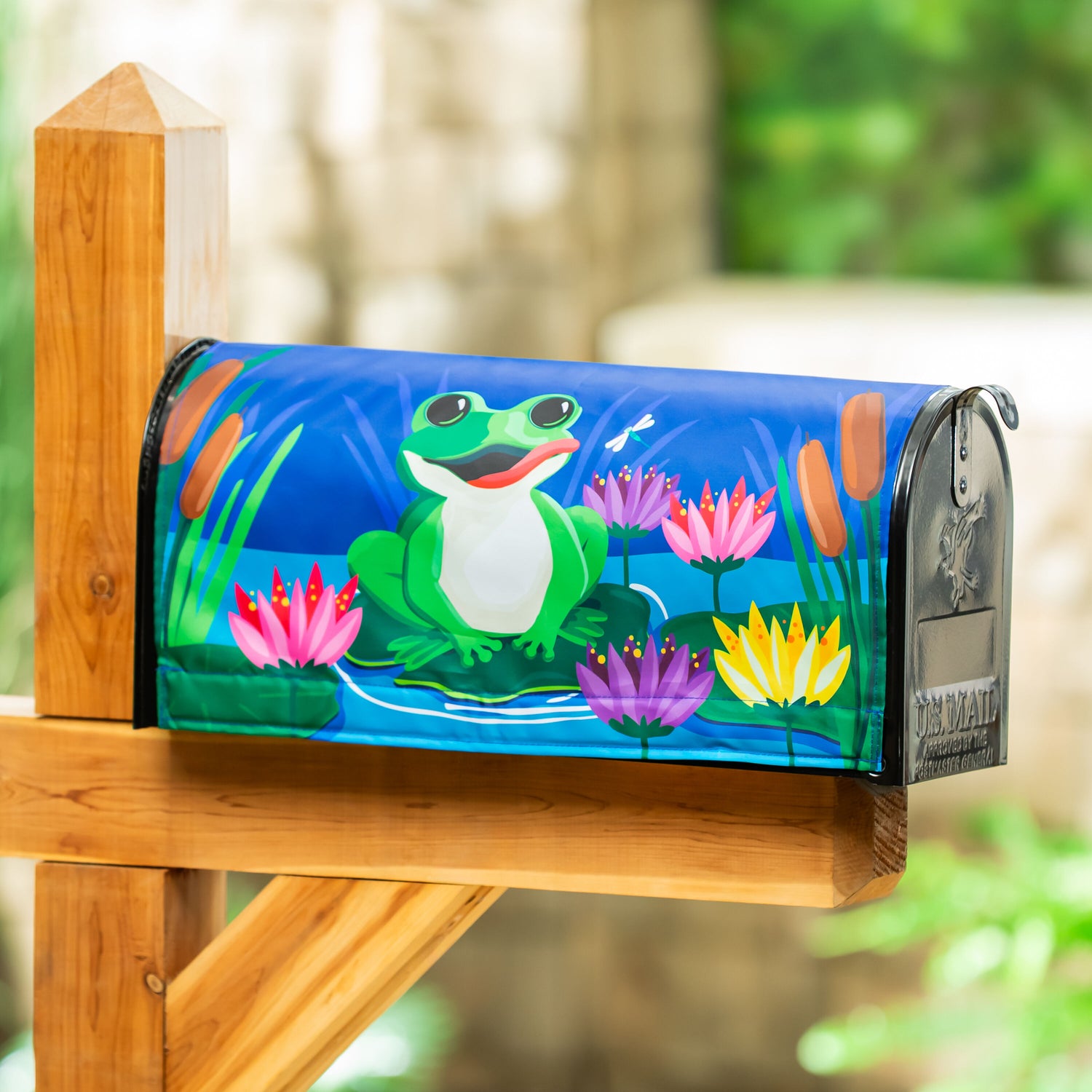 Any mailbox can inspire guests and neighbors this season with this cover. Passersby will enjoy the stunning curb appeal of this piece with its charming design and intricate details. This mailbox cover truly is a lovely curbside decoration for the summer season. With detailed hand-stitching and a 3D look, Evergreen's mailbox covers are sure to grab everyone’s attention. The durable materials are fade and weather-resistant, ensuring it last season after season. Magnetic anchors on each side help hold it on the mailbox. Includes latch and flag openings for added convenience and fits most standard-sized mailboxes.