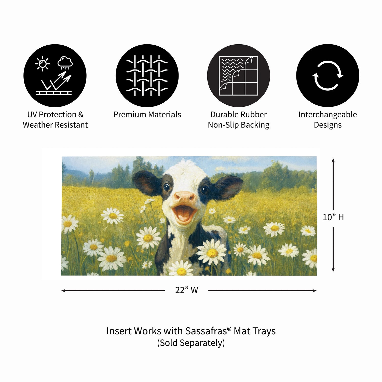 Sweep guests off their feet with our beautifully made Sassafras mats! Made with bright pops of color that are perfect for the season, this mat will put pep in anyone's step. Crafted from heat-sublimated polyester with a rubber backing, this versatile mat is designed to fit perfectly within Evergreen's switch doormat bases. The mildew resistant mat is ideal for indoor or outdoor use and features a skid-resistant backing to help keep it in place. This welcoming mat will freshen up your stoop season after season while ensuring your home stays debris-free. For stains, simply spot clean with soap and warm water.