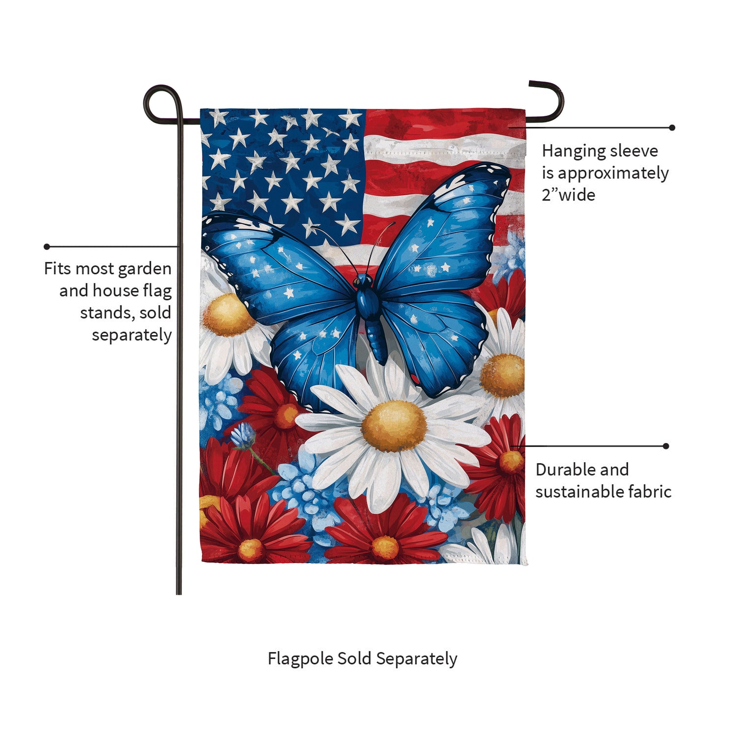 Bursting with bright colors and a detailed, lively design that adds beauty to any space, this flag is perfect for spring and beyond. Hang it in the garden to greet guests, neighbors, and friends. Flag is crafted of medium-weight suede fabric made from recycled plastic that provides a soft and durable texture. Artwork is heat transferred onto the sun-blocking material so that it is easily viewed from both sides. The weatherproof flag will not fray or fade with continued outdoor use. This flag features a sleeve for use with any standard flagpole or stand, sold separately.
