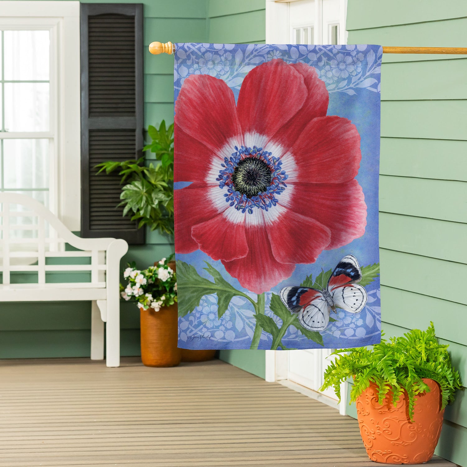 Bursting with bright colors and a detailed, lively design that adds beauty to any space, this flag is perfect for spring and beyond. Hang it in the garden to greet guests, neighbors, and friends. Flag is crafted of medium-weight suede fabric made from recycled plastic that provides a soft and durable texture. Artwork is heat transferred onto the sun-blocking material so that it is easily viewed from both sides. The weatherproof flag will not fray or fade with continued outdoor use. This flag features a sleeve for use with any standard flagpole or stand, sold separately.