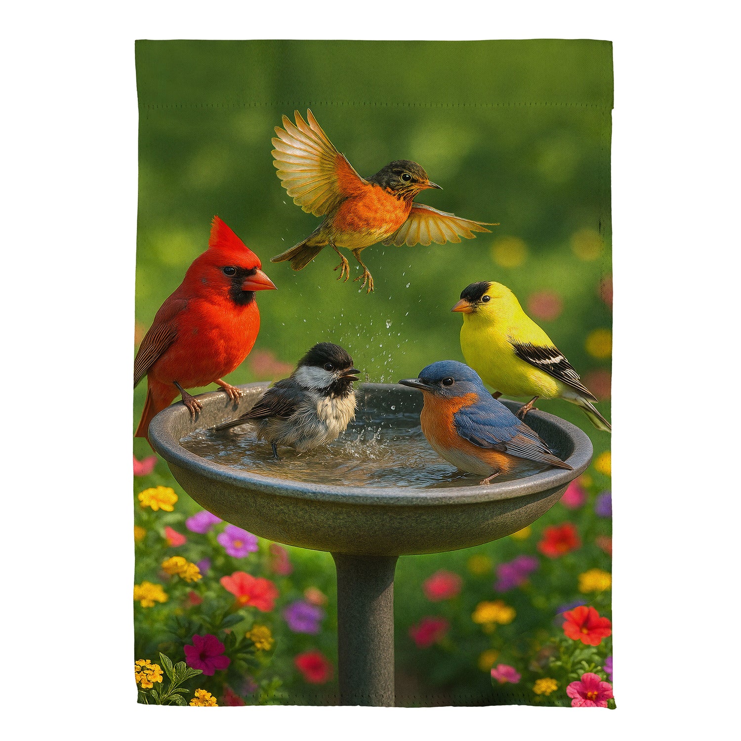Enjoy the warm rays and cool breezes of summer by relaxing outside on the porch or in the garden. Create a refreshing backyard getaway with the perfect decorations, including this flag. It features vibrant pops of color and rich details, adding cheer and a lively atmosphere to greet friends, family, and neighbors. This Suede Reflections flag is made of medium-weight, polyester suede that provides a soft and durable texture. Artwork is heat transferred onto the sun-blocking material so that it is easily viewed from both sides. The weatherproof poly-suede will not fray or fade with continued outdoor use. This flag features a sleeve for use with any standard flagpole or stand, sold separately.