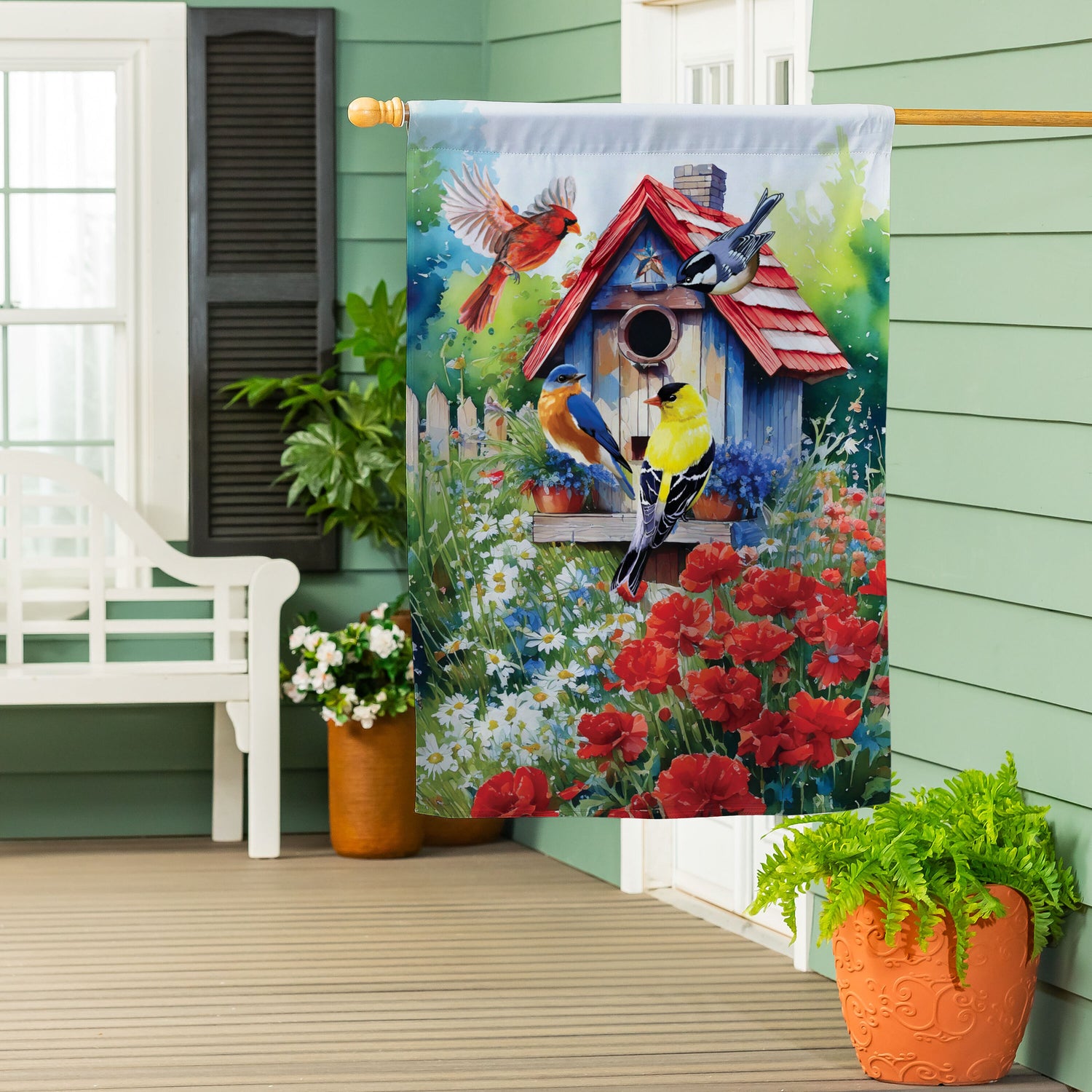 Americana Songbirds Garden Suede House Flag
