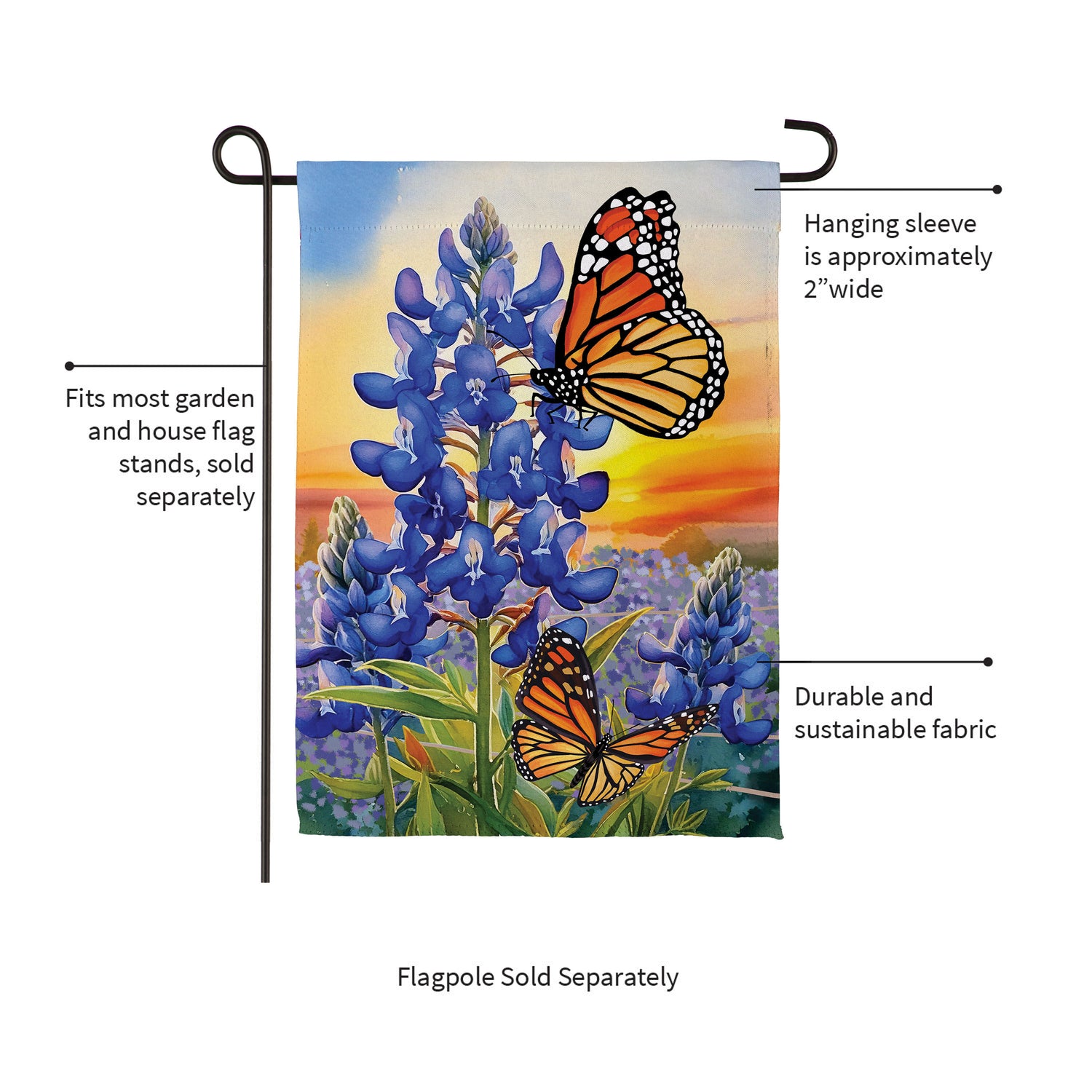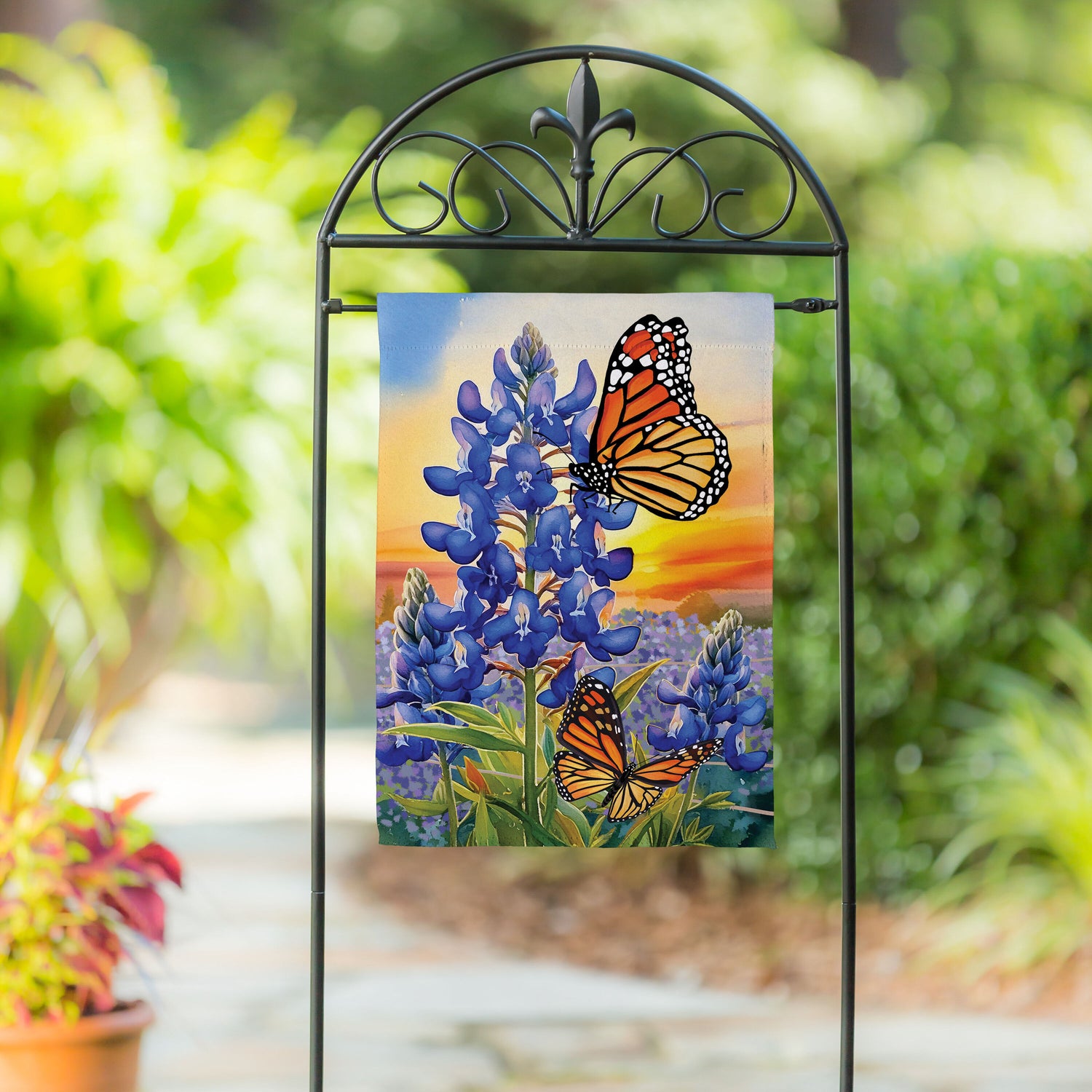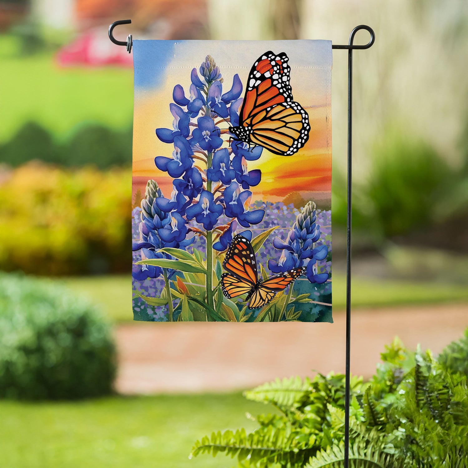 Bluebonnet & Butterfly Suede Garden Flag