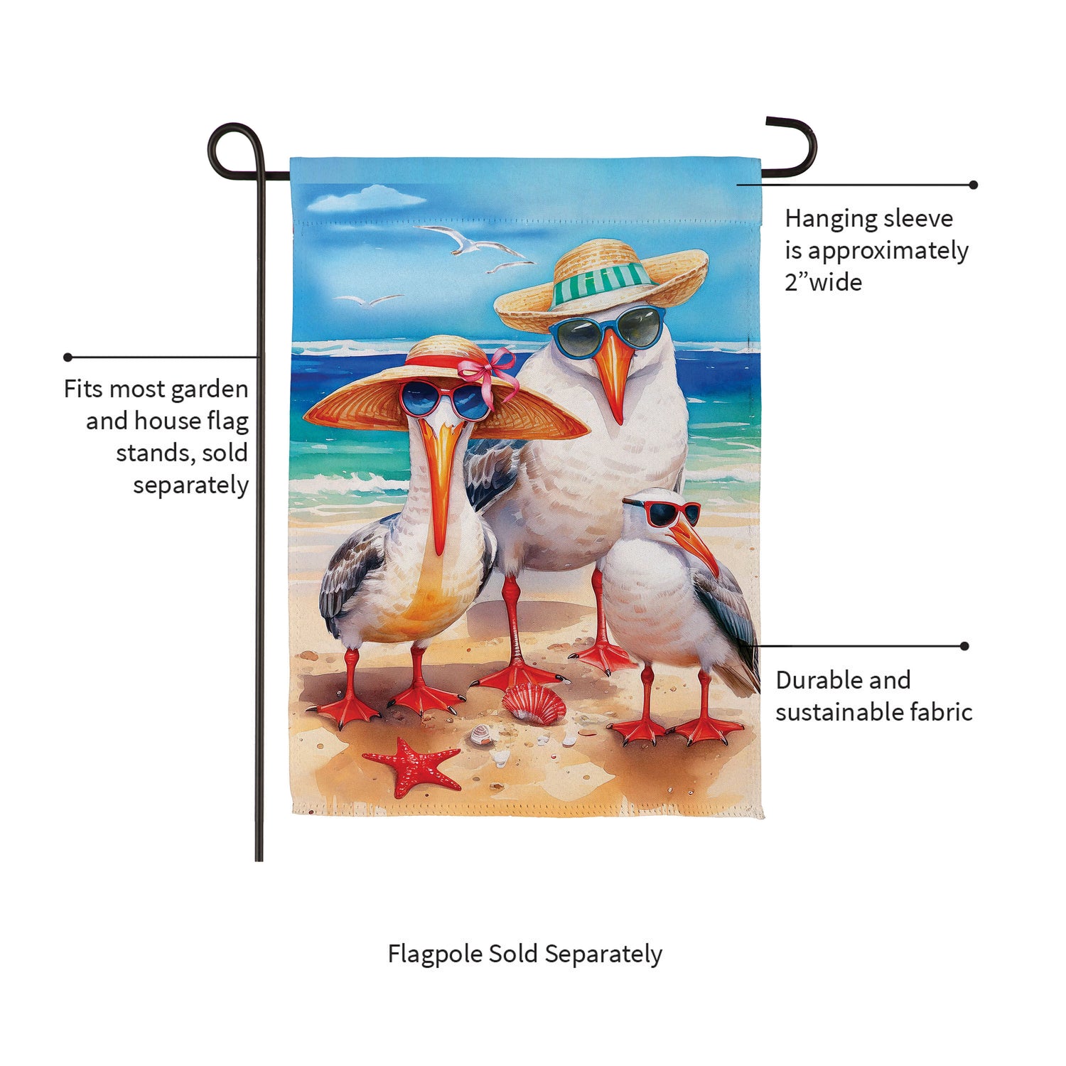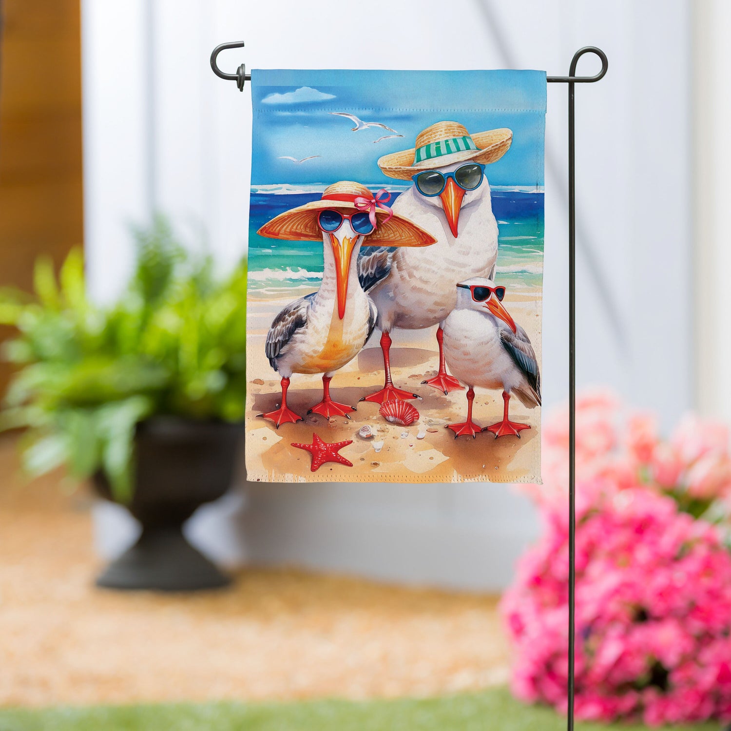 Bursting with bright colors and a detailed, lively design that adds beauty to any space, this flag is perfect for spring and beyond. Hang it in the garden to greet guests, neighbors, and friends. Flag is crafted of medium-weight suede fabric made from recycled plastic that provides a soft and durable texture. Artwork is heat transferred onto the sun-blocking material so that it is easily viewed from both sides. The weatherproof flag will not fray or fade with continued outdoor use. This flag features a sleeve for use with any standard flagpole or stand, sold separately.