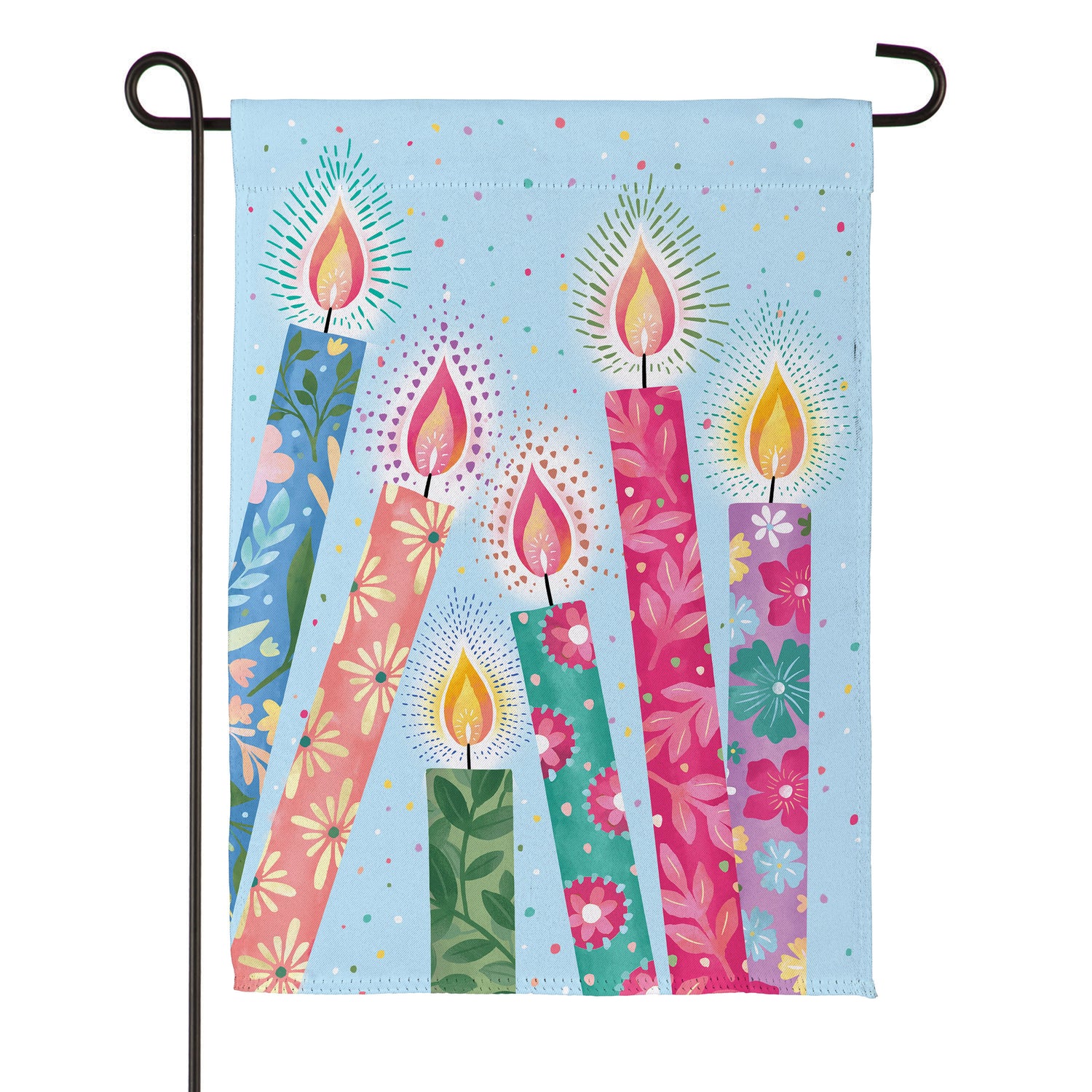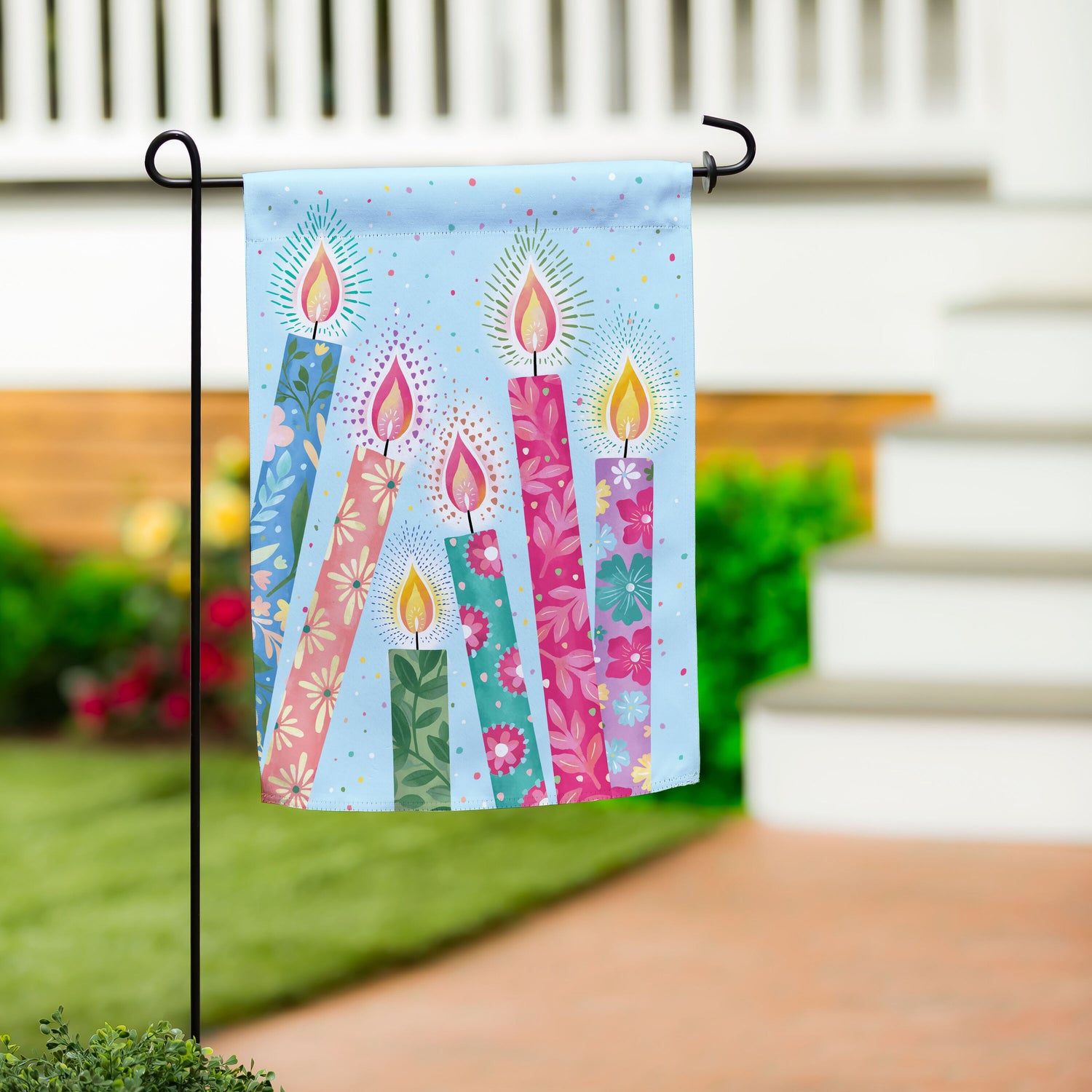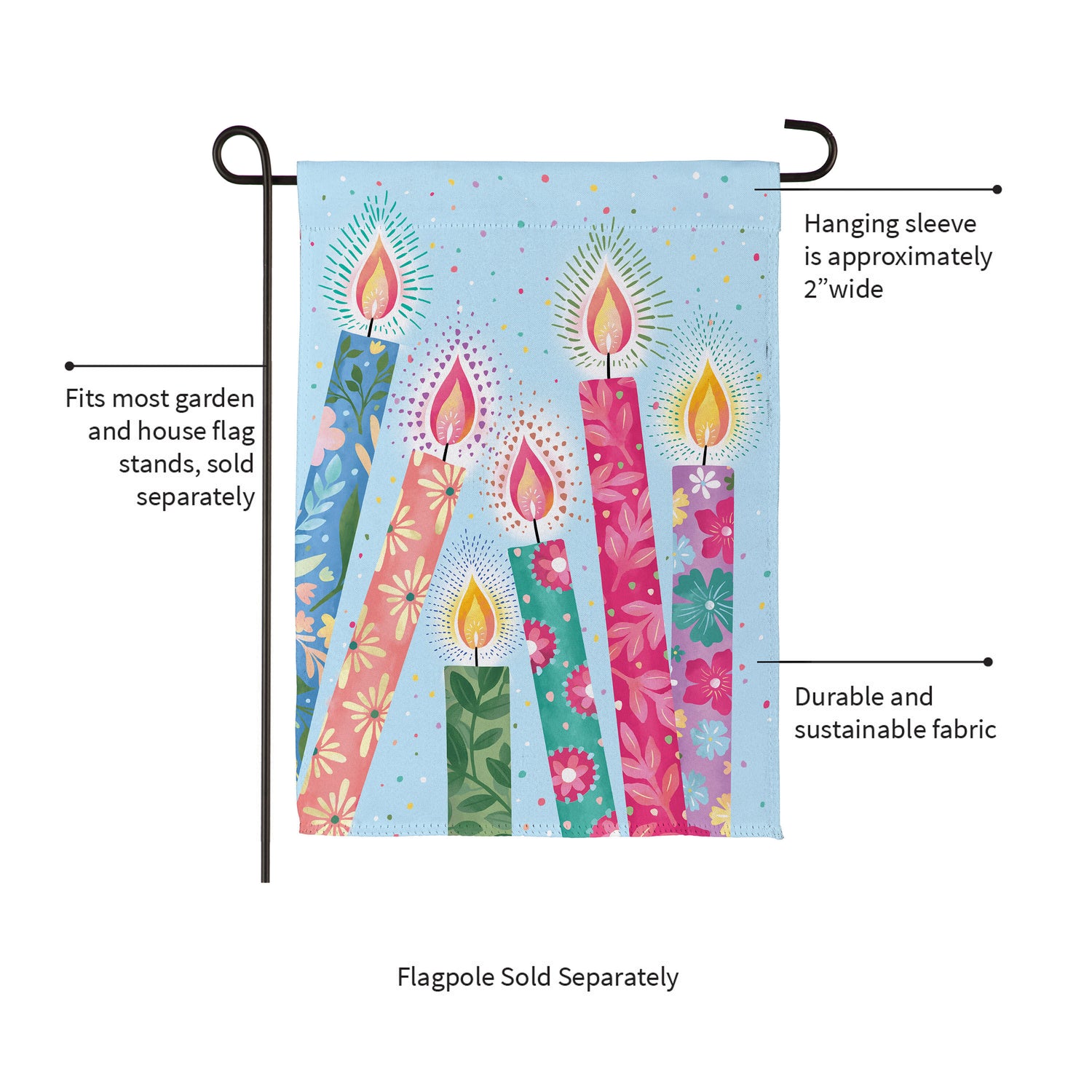Bursting with bright colors and a detailed, lively design that adds beauty to any space, this flag is perfect for spring and beyond. Hang it in the garden to greet guests, neighbors, and friends. Flag is crafted of medium-weight suede fabric made from recycled plastic that provides a soft and durable texture. Artwork is heat transferred onto the sun-blocking material so that it is easily viewed from both sides. The weatherproof flag will not fray or fade with continued outdoor use. This flag features a sleeve for use with any standard flagpole or stand, sold separately.