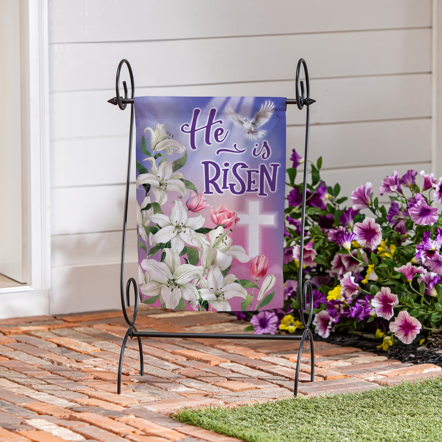 Bursting with bright colors and a detailed, lively design that adds beauty to any space, this flag is perfect for spring and beyond. Hang it in the garden to greet guests, neighbors, and friends. Flag is crafted of medium-weight suede fabric made from recycled plastic that provides a soft and durable texture. Artwork is heat transferred onto the sun-blocking material so that it is easily viewed from both sides. The weatherproof flag will not fray or fade with continued outdoor use. This flag features a sleeve for use with any standard flagpole or stand, sold separately.