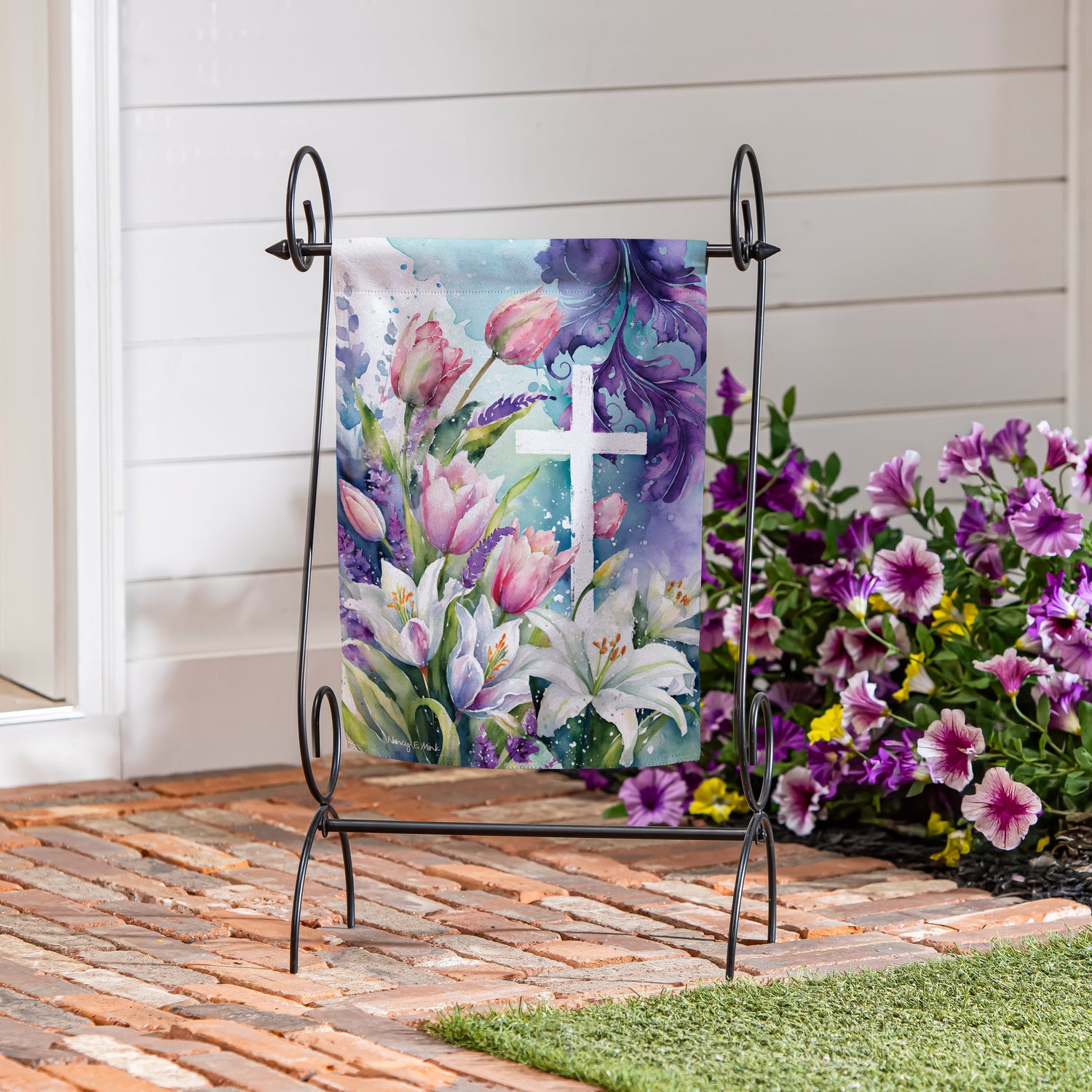 Bursting with bright colors and a detailed, lively design that adds beauty to any space, this flag is perfect for spring and beyond. Hang it in the garden to greet guests, neighbors, and friends. Flag is crafted of medium-weight suede fabric made from recycled plastic that provides a soft and durable texture. Artwork is heat transferred onto the sun-blocking material so that it is easily viewed from both sides. The weatherproof flag will not fray or fade with continued outdoor use. This flag features a sleeve for use with any standard flagpole or stand, sold separately.
