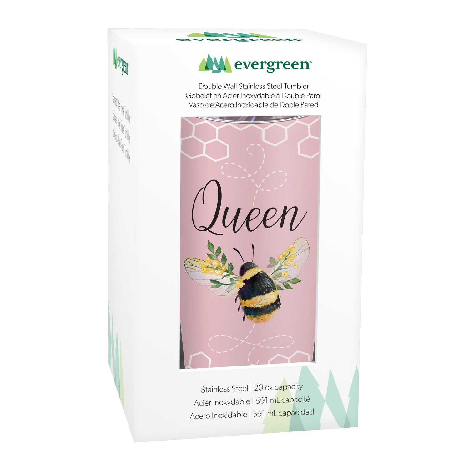 Pollinator Garden Tumbler Double Wall Stainless Steel Tumbler, Queen Bee, 20oz, Gift Box