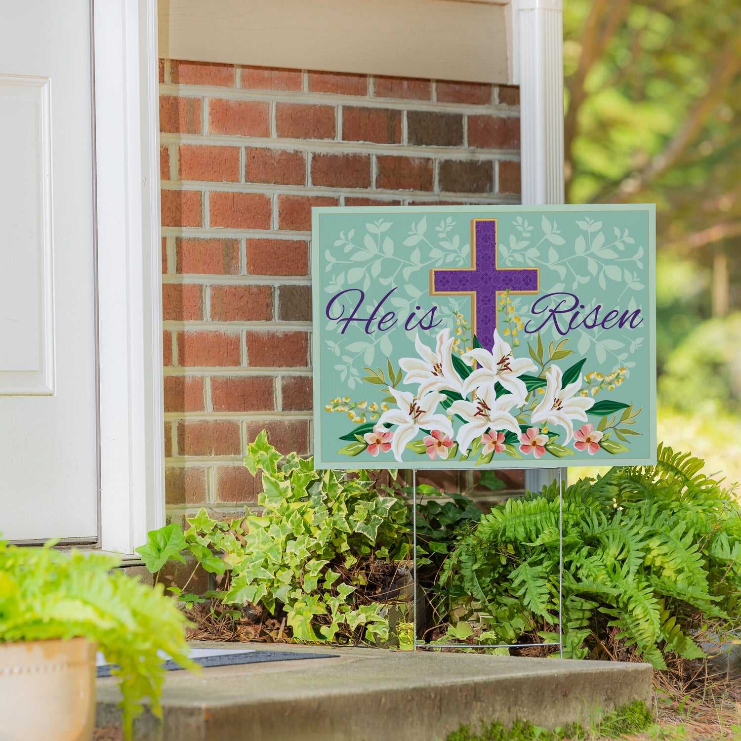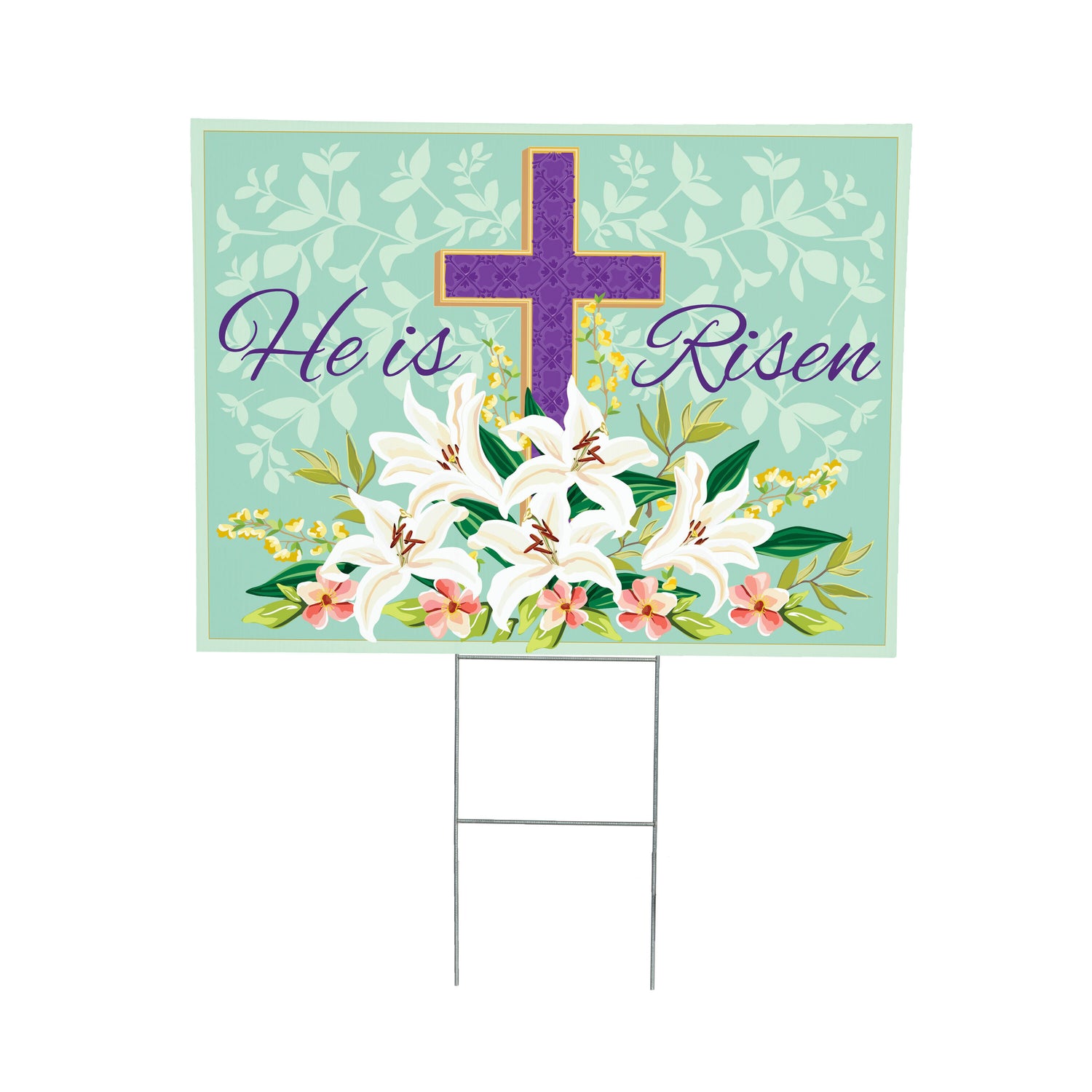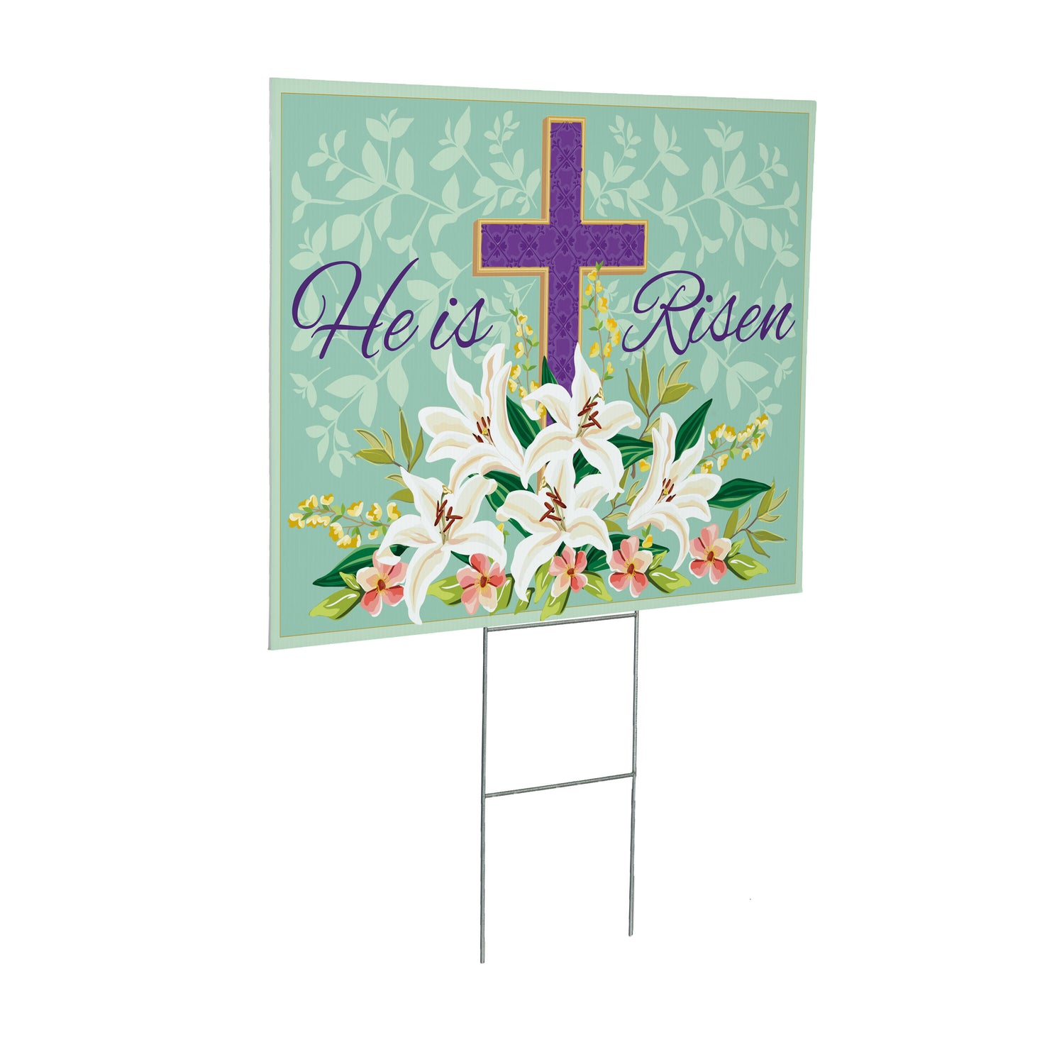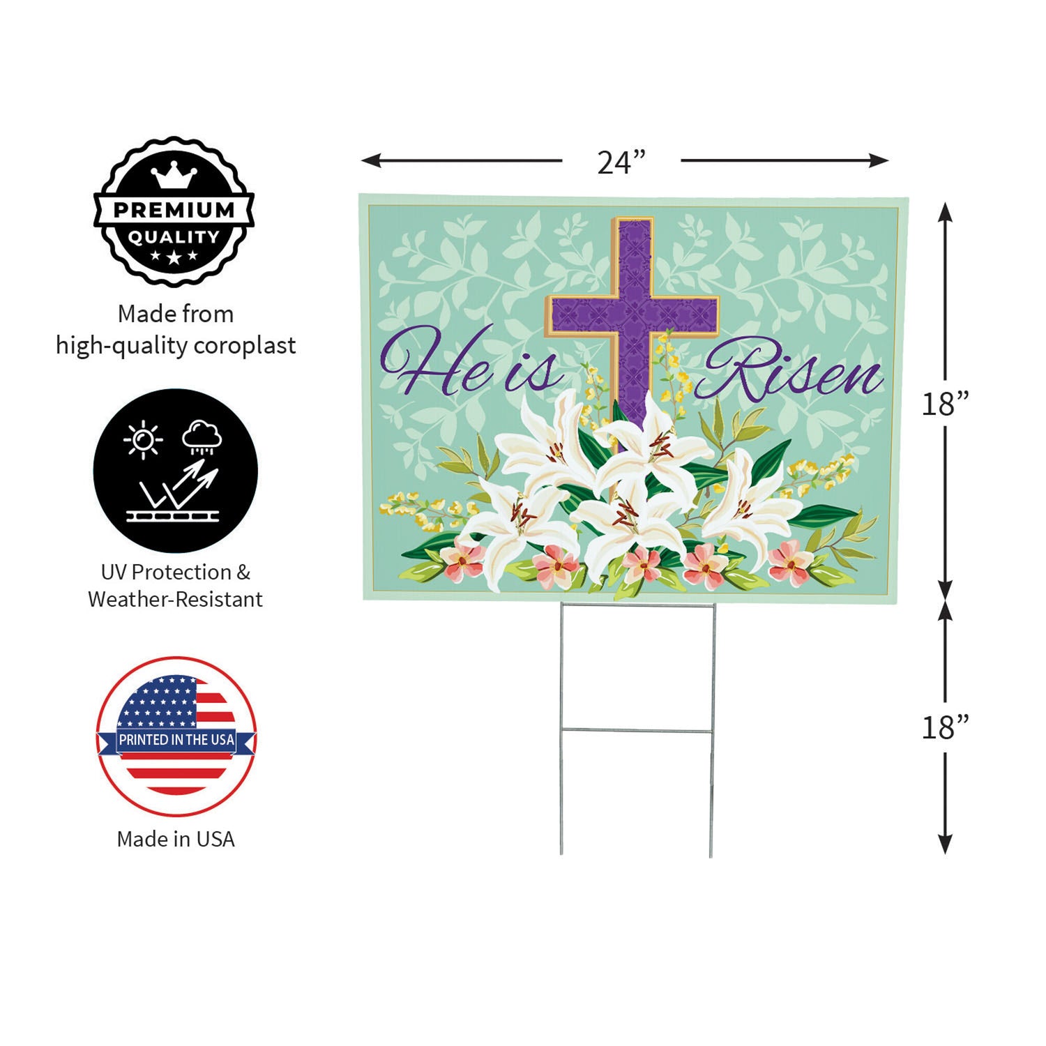 Easter Cross Yard Sign, "He Is Risen," 24"x18"