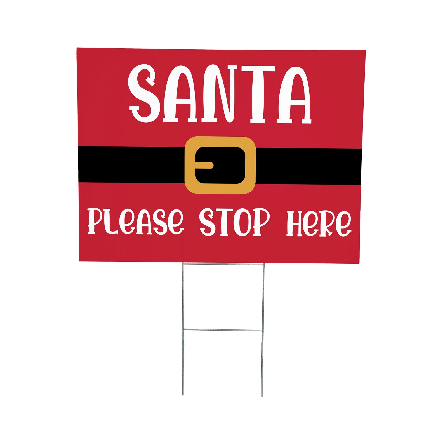 Twas The Night Christmas Yard Sign, "Santa Please Stop Here", 24"x18"