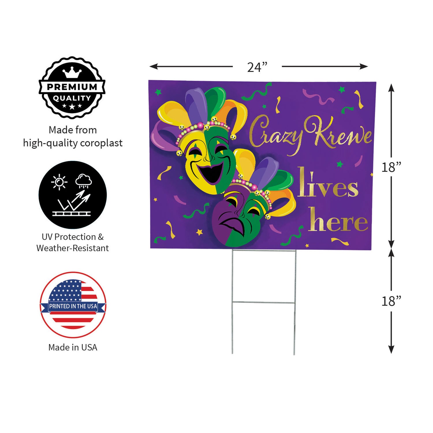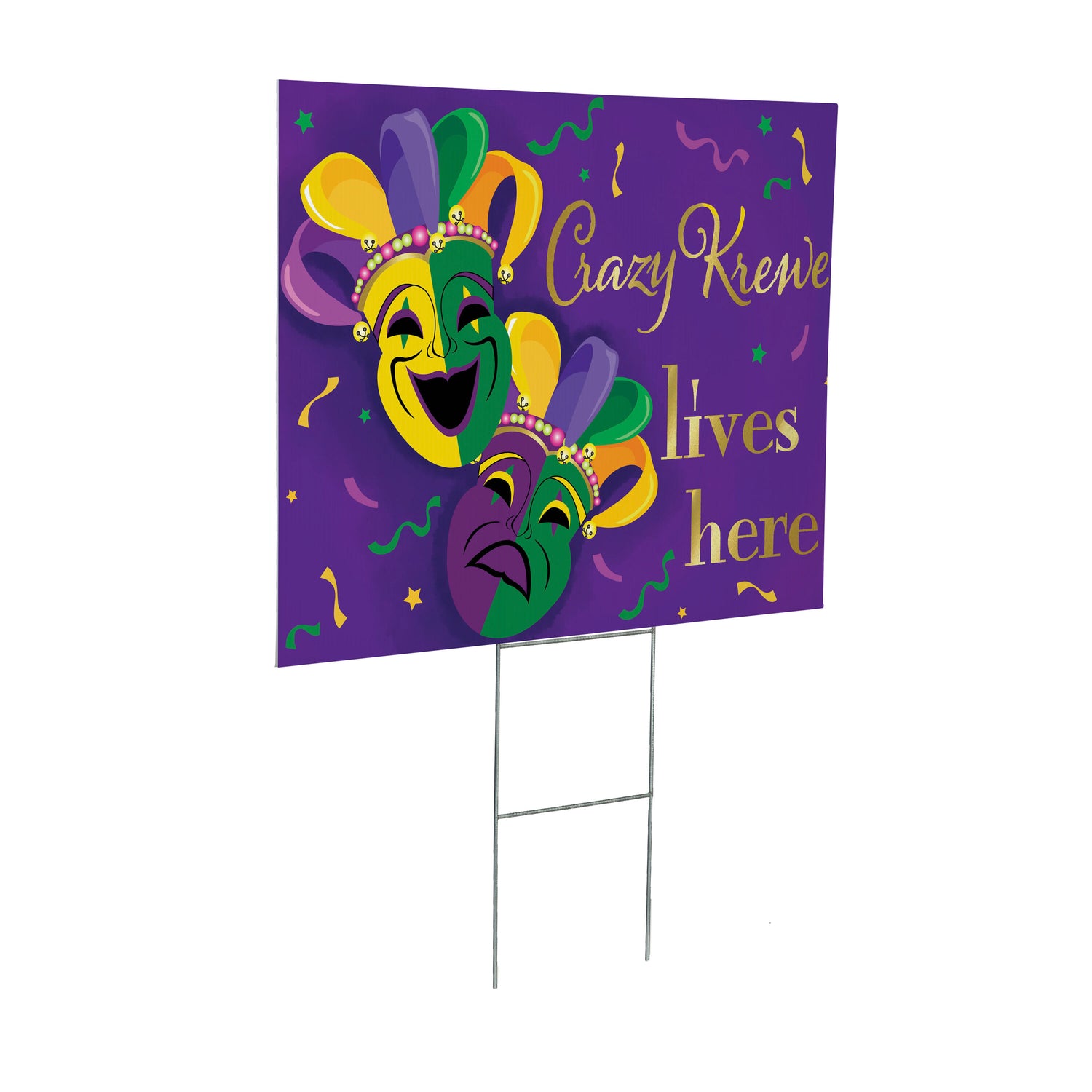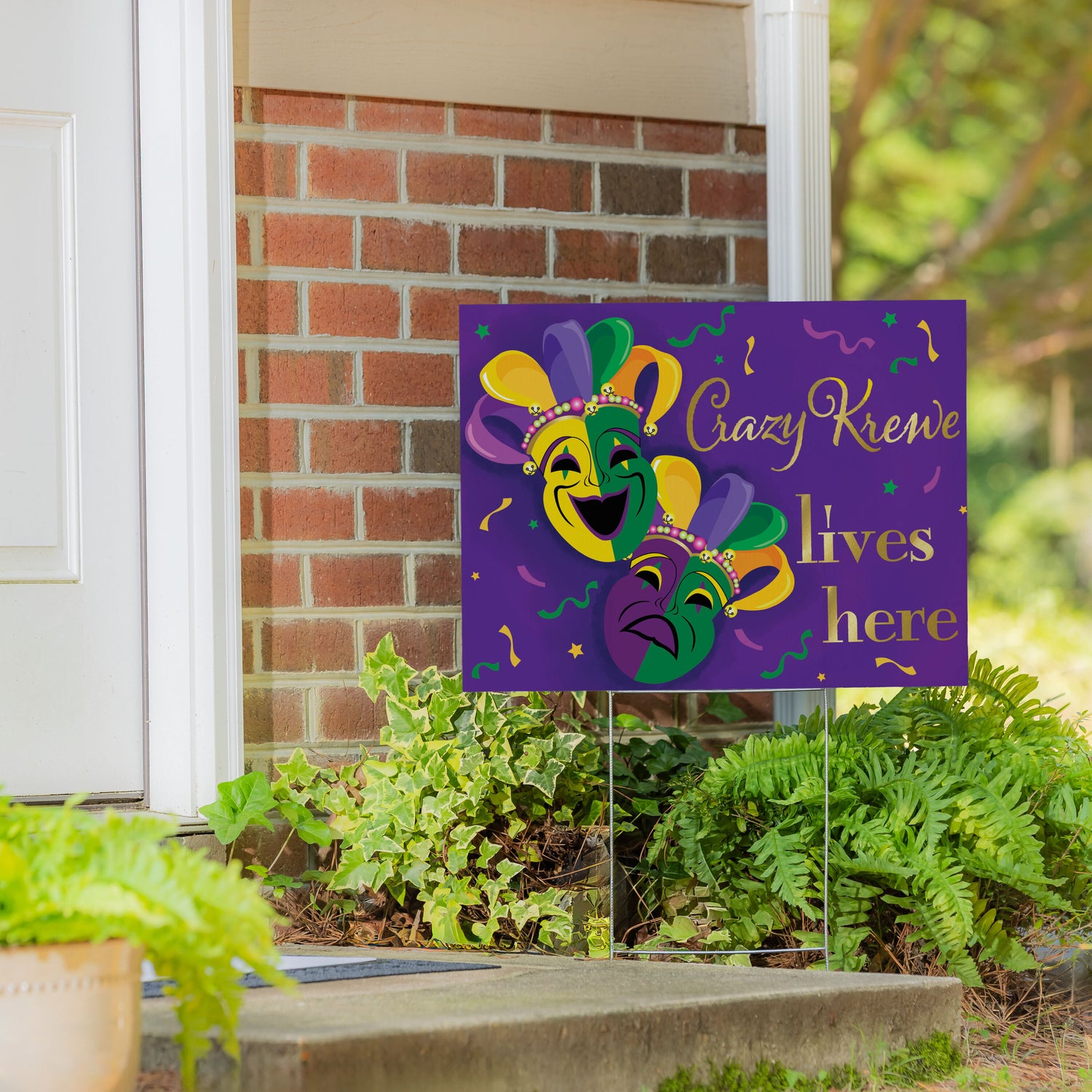 Mardi Gras Yard Sign,"Crazy Krewe Lives Here", 24"x18"