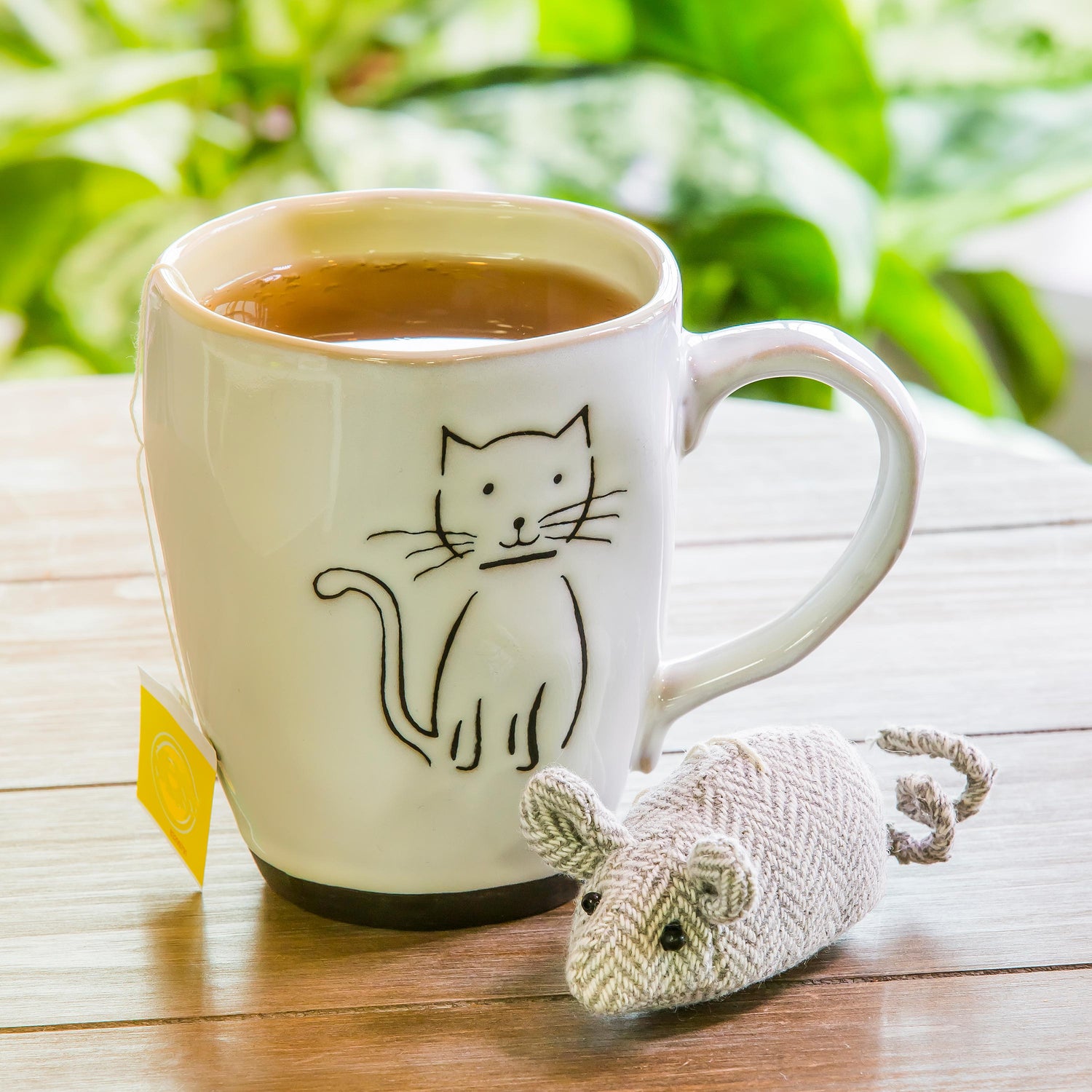 Give a pet lover the perfect present with this ceramic cup and cat toy gift set. An adorable kitty sketch covers the side of a crisp white mug that comes with a plush mouse toy to enhance a lucky cat's playtime. The set beautifully combines functionality with style and is sure to delight its recipient. Crafted from high-quality ceramic, this purrfect cup is top-rack dishwasher safe and can be used in the microwave for a quick reheat. It holds up to 16 ounces of your favorite beverage. Meow!