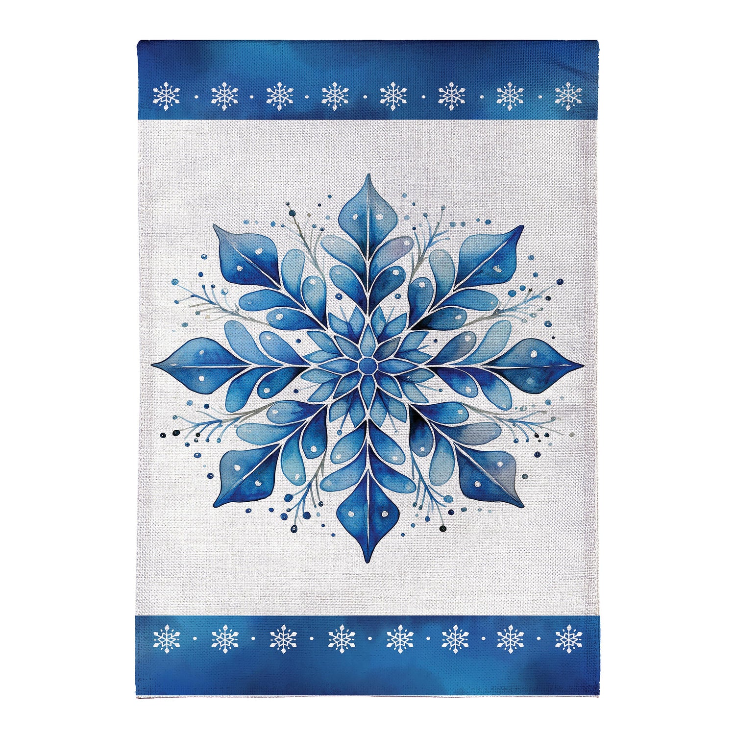 Add magic and wonder to any garden or yard when you hang up this beautiful flag. Featuring an intricately designed snowflake, this flag is perfect for the festive season. This flag is made of medium-weight, soft burlap fabric that's made from recycled plastic that has the look and feel of real burlap. Artwork is heat transferred onto both sides of the textured fabric to create a natural, crafted look. The flag is durable and weatherproof and will not fade or fray after continued display. This flag features a sleeve for use with any standard flagpole or stand, sold separately.