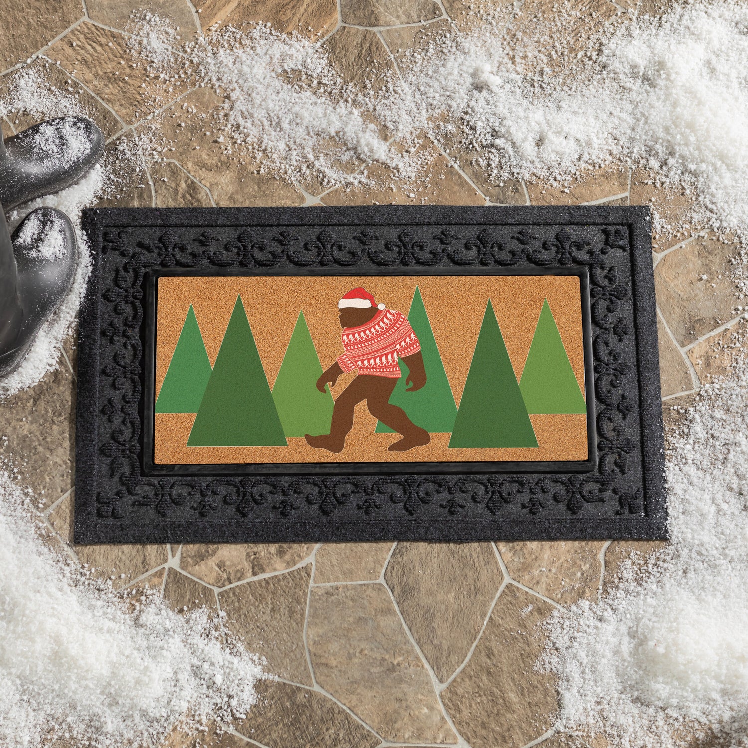 High Country Bigfoot Christmas Flocked Coir Sassafras Switch Mat, 22"x10"