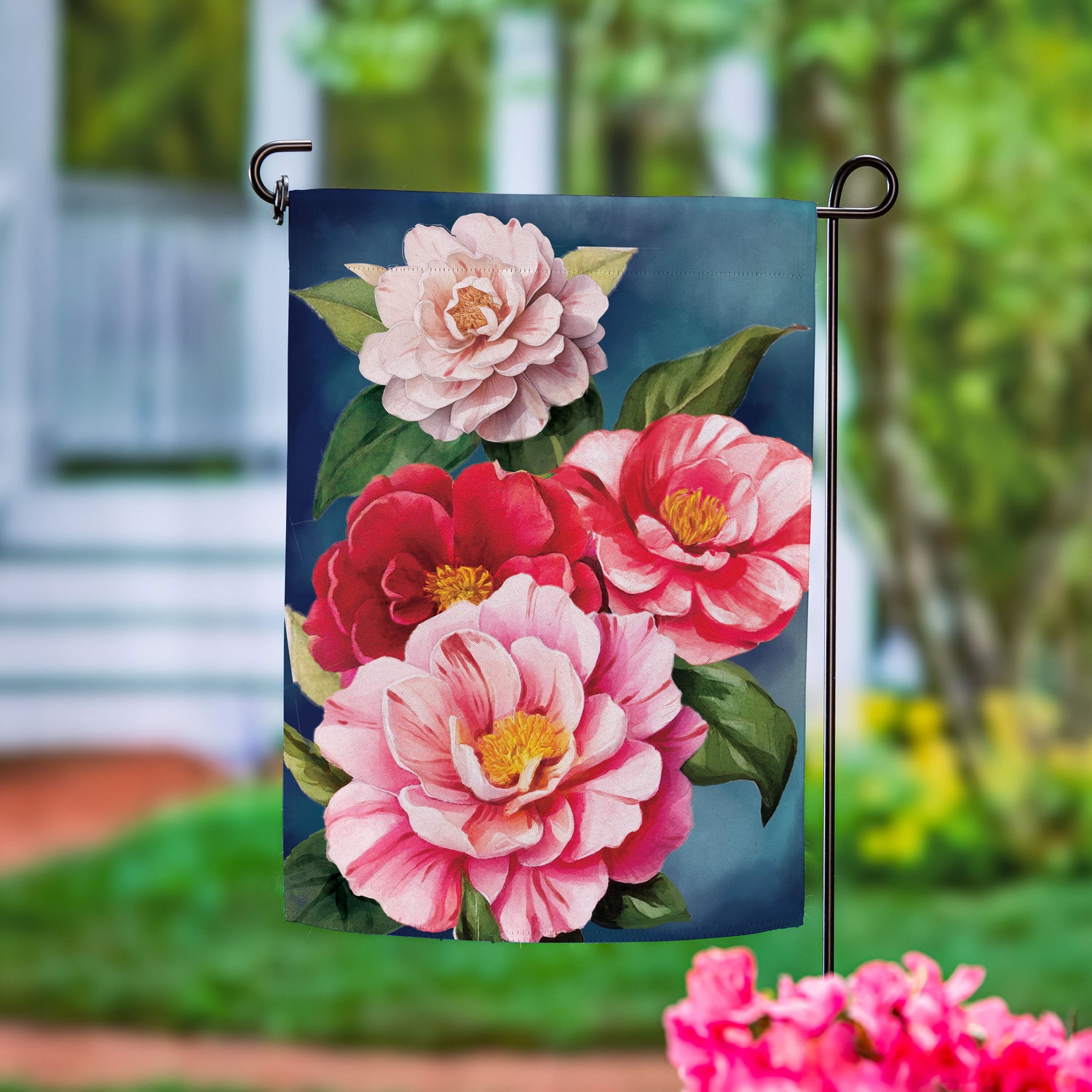 Bursting with bright colors and a detailed, lively design that adds beauty to any space, this flag is perfect for spring and beyond. Hang it in the garden to greet guests, neighbors, and friends. Flag is crafted of medium-weight suede fabric made from recycled plastic that provides a soft and durable texture. Artwork is heat transferred onto the sun-blocking material so that it is easily viewed from both sides. The weatherproof flag will not fray or fade with continued outdoor use. This flag features a sleeve for use with any standard flagpole or stand, sold separately.