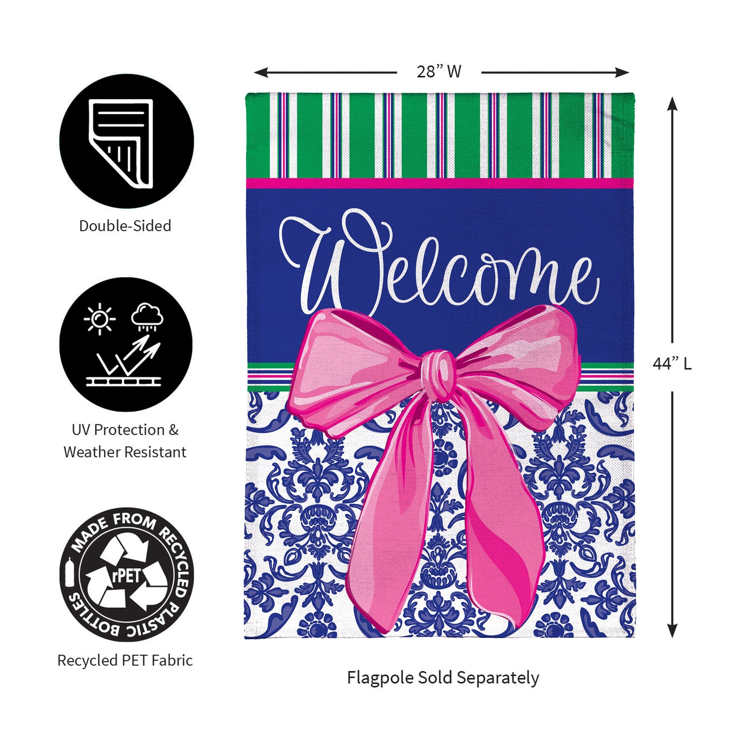 Enjoy the warm rays and cool breezes of summer by relaxing outside on the porch or in the garden. Create a refreshing backyard getaway with the perfect decorations, including this flag. It features vibrant pops of color and rich details, adding cheer and a lively atmosphere to greet friends, family, and neighbors. Crafted of medium-weight, soft polyester burlap fabric, this flag has the look and feel of real burlap. Artwork is heat transferred onto both sides of the textured fabric to create a natural, crafted look. The poly-burlap is a durable and weatherproof material that will not fade or fray after continued use. All flags also feature a sleeve for use with any standard flagpole or stand, sold separately.
