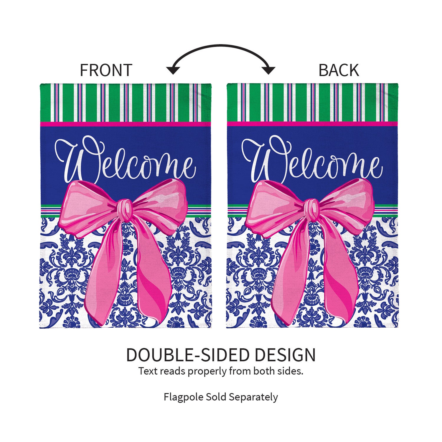 Welcome Bow Chinoiserie Burlap House Flag