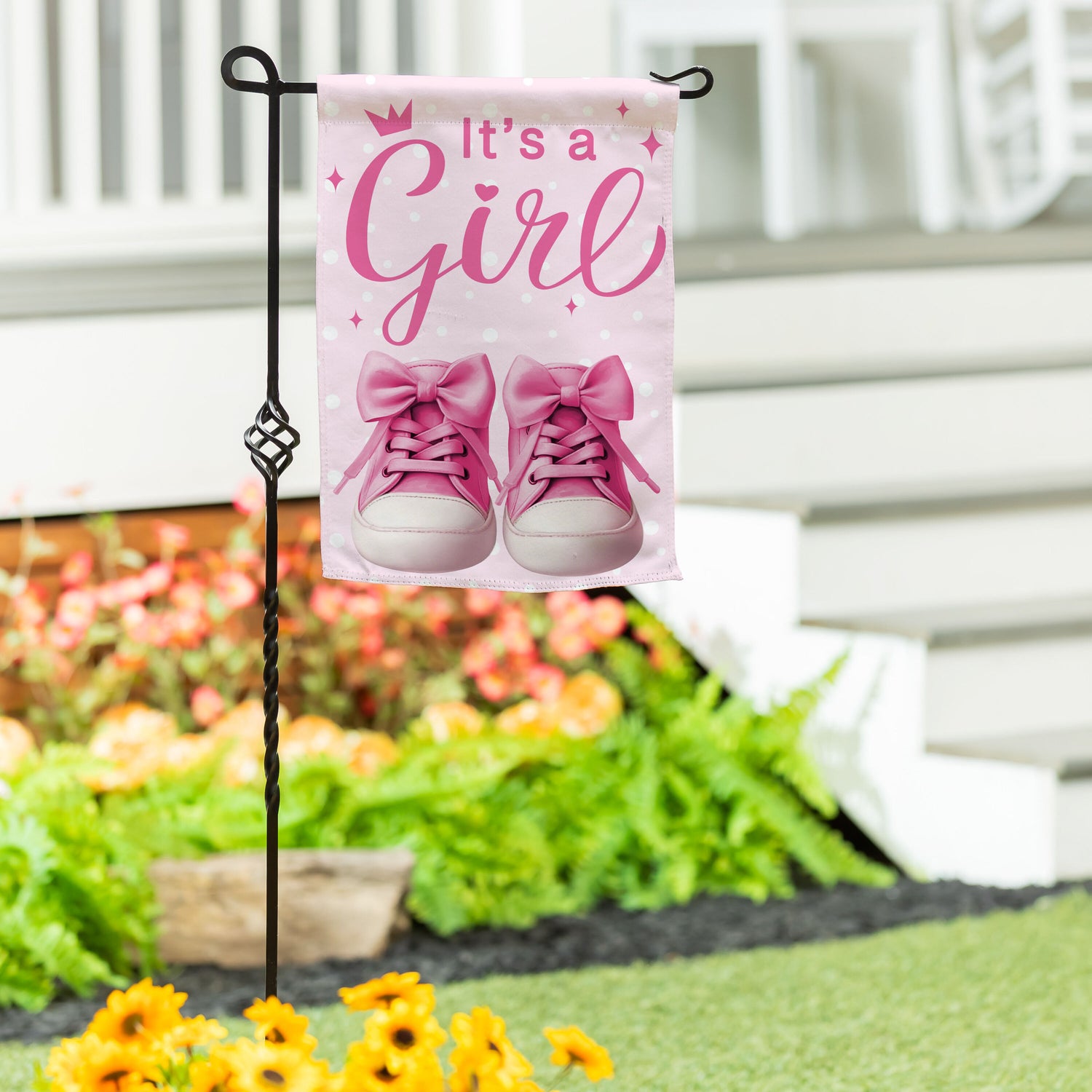 It's a Girl Pink Suede Garden Flag