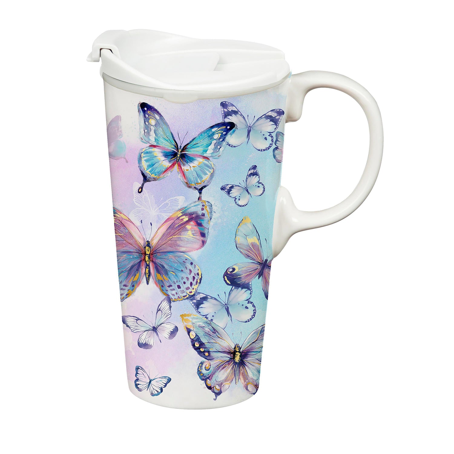 Season To Sparkle Travel Cup Ceramic Perfect Cup, Butterfly, 17oz, Gift Box