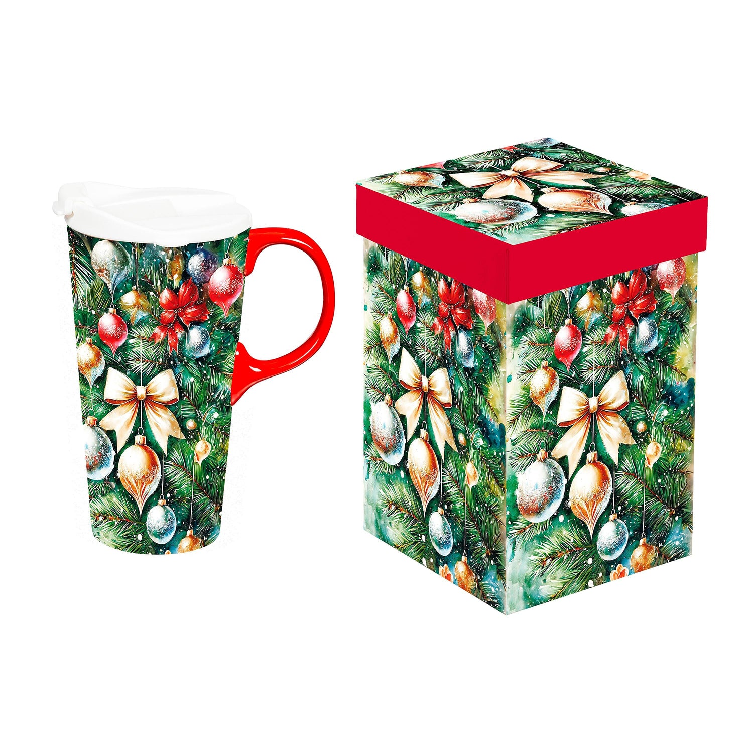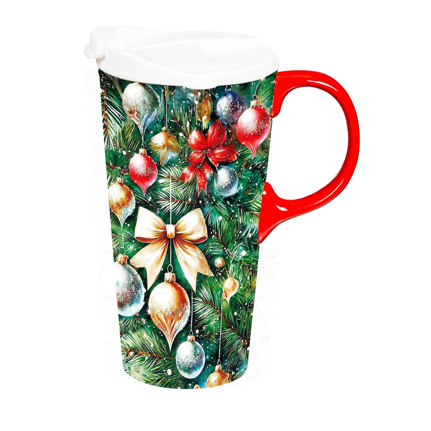 Twas The Night Travel Cup Ceramic Perfect Cup, Tree with Ornaments, 17oz, Gift Box