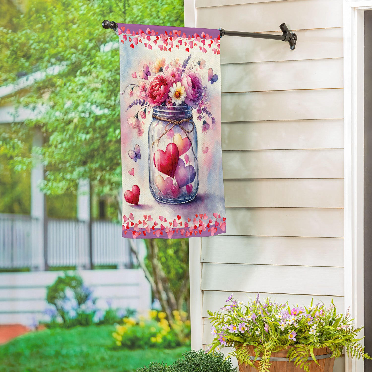 Bursting with bright colors and a detailed, lively design that adds beauty to any space, this flag is perfect for spring and beyond. Hang it in the garden to greet guests, neighbors, and friends. Flag is crafted of medium-weight suede fabric made from recycled plastic that provides a soft and durable texture. Artwork is heat transferred onto the sun-blocking material so that it is easily viewed from both sides. The weatherproof flag will not fray or fade with continued outdoor use. This flag features a sleeve for use with any standard flagpole or stand, sold separately.