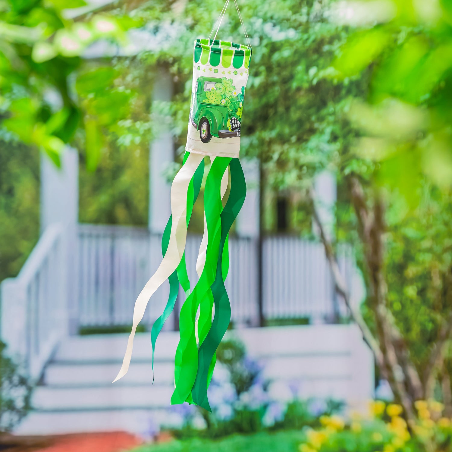 The darling design of this windsock will add movement and whimsy to any garden. Colorful tails with hemmed edges dance in the wind, bringing the design to life every time the wind blows. Perfect for springtime, it's made with durable materials to ensure it lasts year after year. The artwork is heat sublimated onto weather-resistant nylon fabric with superior quality. A poly-carbonate plastic hoop at the top opening holds the shape of the windsock and its attached bridle string and swivel snap make hanging easy.