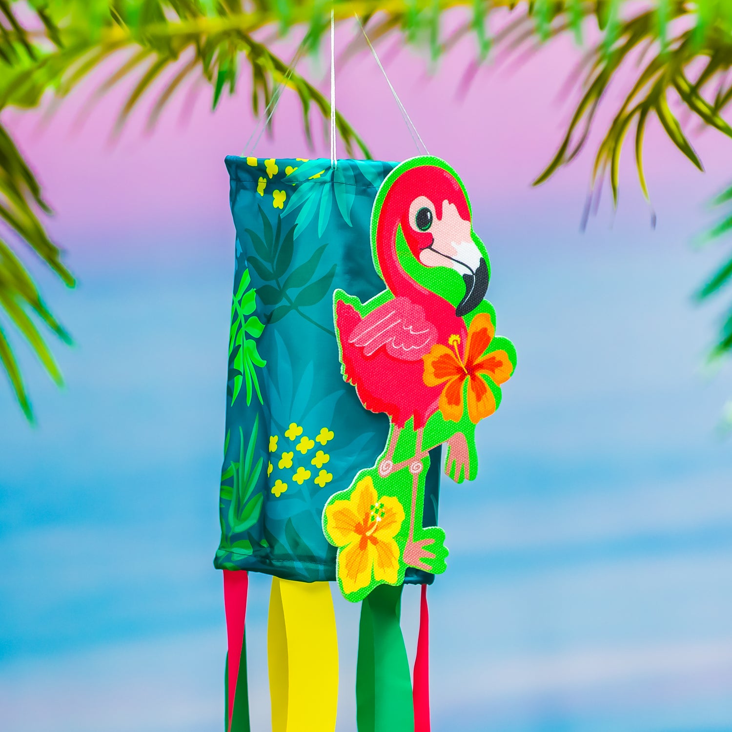 The darling design of this windsock will add movement and whimsy to any garden. Colorful tails with hemmed edges dance in the wind, bringing the design to life every time the wind blows. Perfect for summer, it's made with durable materials to ensure it lasts year after year. The artwork is heat sublimated onto weather-resistant nylon fabric with superior quality. A poly-carbonate plastic hoop at the top opening holds the shape of the windsock and its attached bridle string and swivel snap make hanging easy.