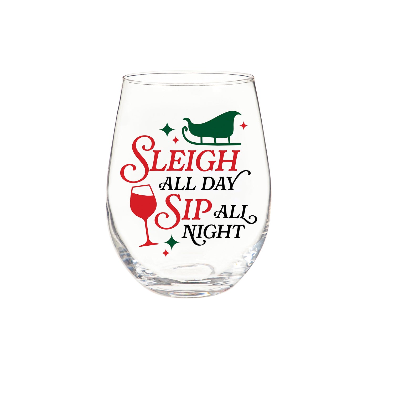 Christmas Vacation Wine Glass Stemless Glass, Sleigh All Day, 17oz, Gift Box