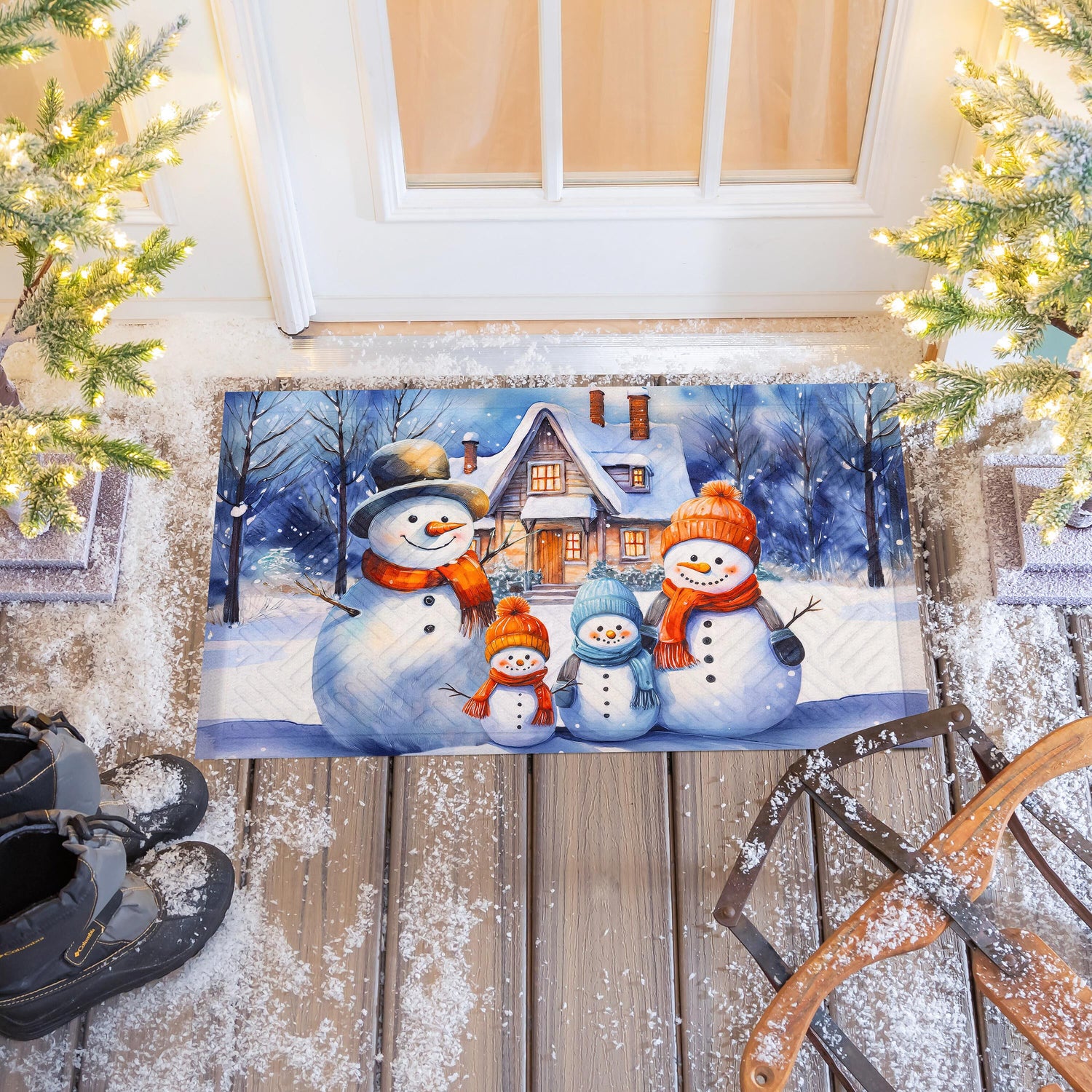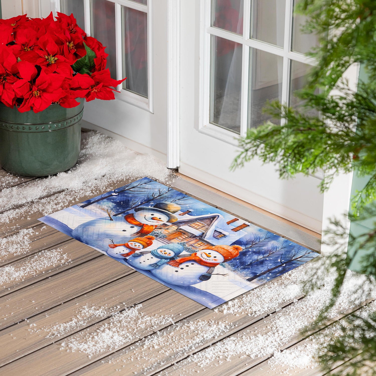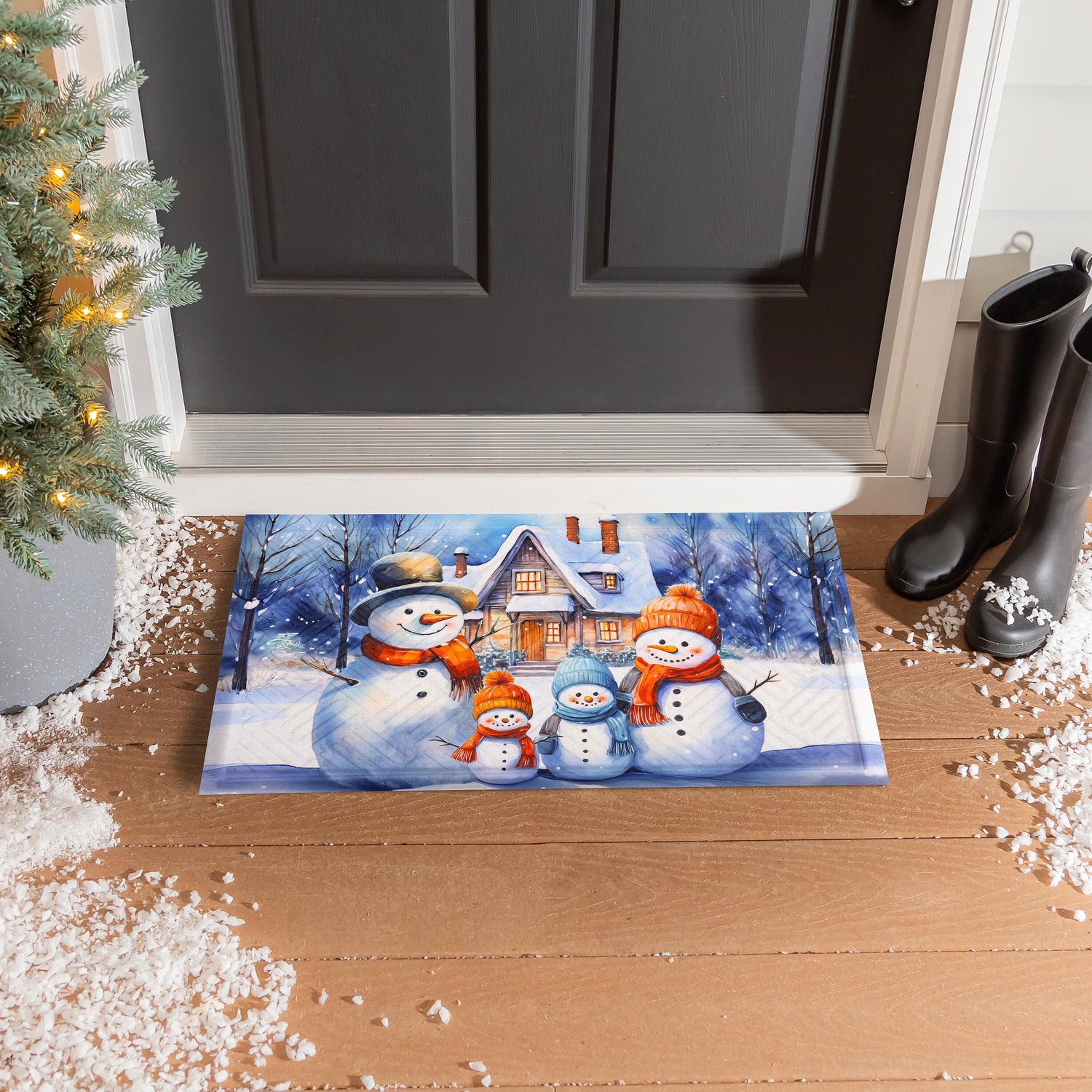 Step into winter style with this embossed mat. Perfect for adding an extra charming touch to any entryway, this welcoming design features an adorable family of snowmen bundled for the weather and a heartwarming message. Evergreen's embossed mats are crafted from outdoor-safe polypropylene and feature a rubber anti-slip backing. The embossed texture makes this mat more effective in trapping dirt, perfect for indoor or outdoor use.
